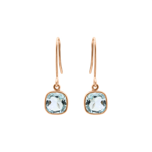 14k Yellow Gold Natural Blue Topaz Gemstone Drop Earrings