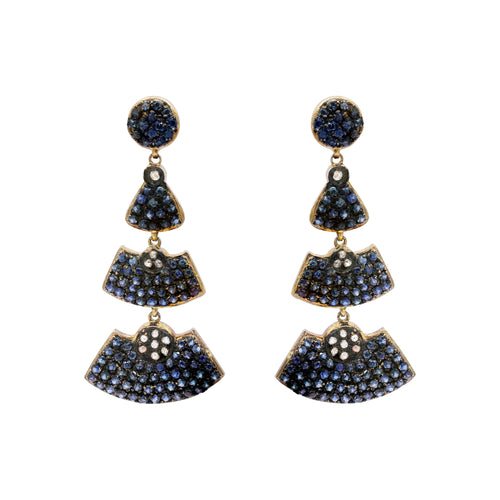 Natural Multi Sapphire And Diamond 925 Sterling Silver Beautiful Drop Earring -