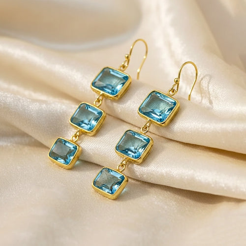 Natural Multi Tourmaline Gemstone Drop Handmade Earrings In 18k Gold -