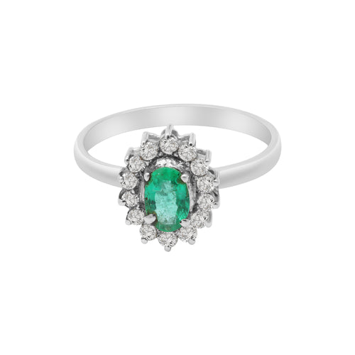 Leaf Shaped Natural Emerald With Diamond Drop Earrings In 18k White Gold -