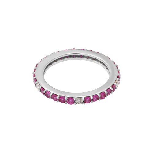 Natural Ruby And Diamond 18k White Gold Band Ring -
