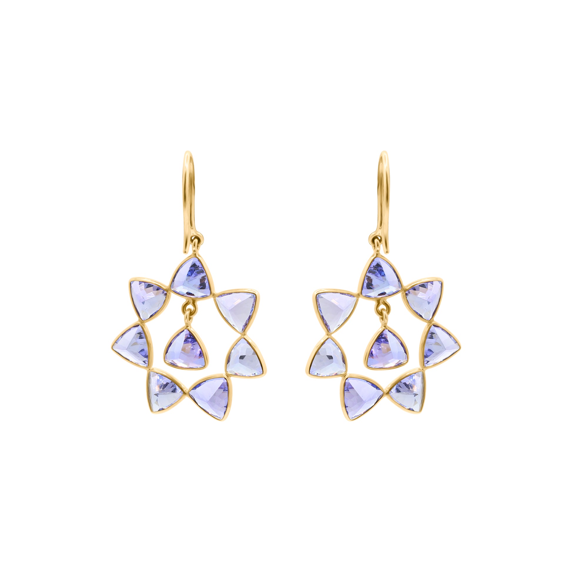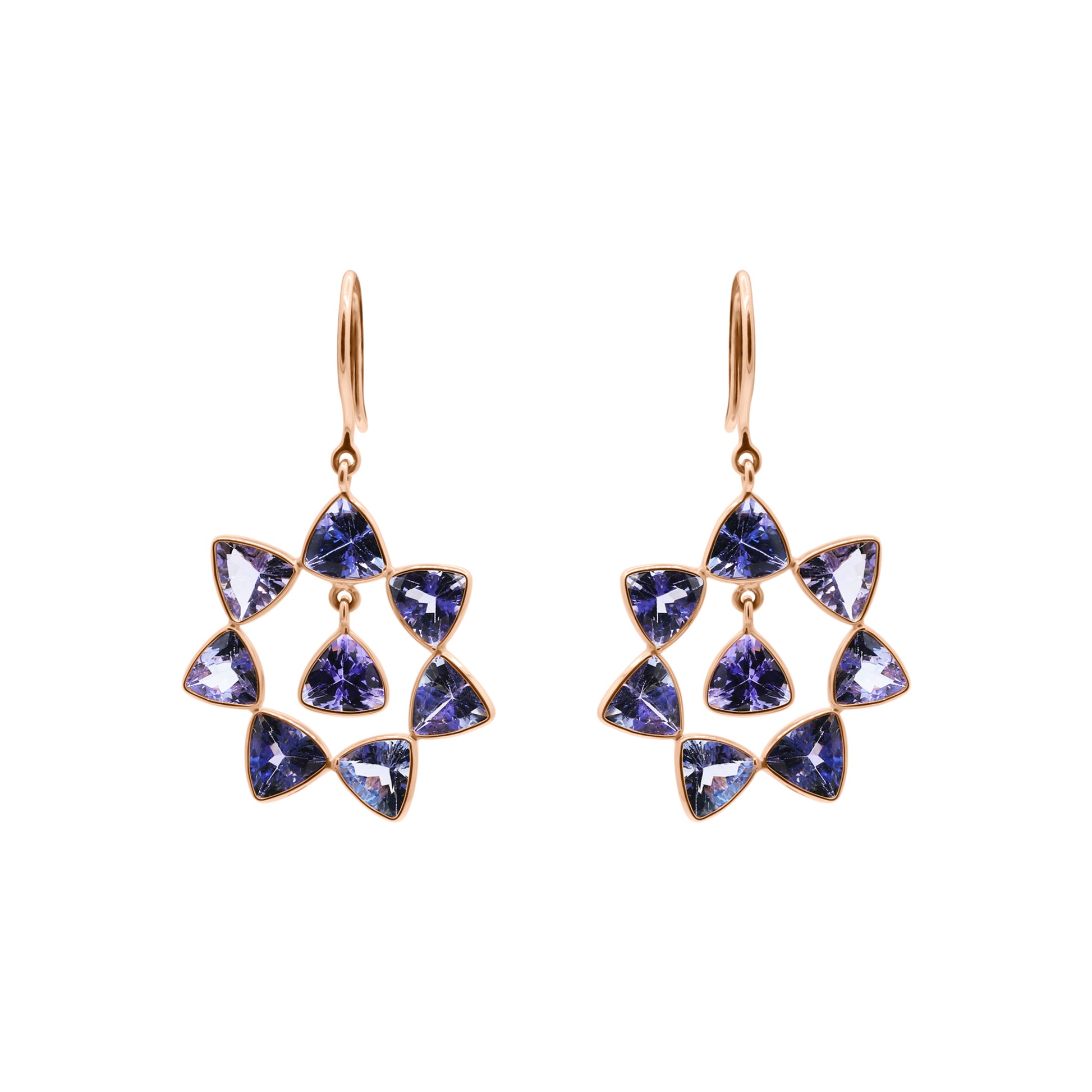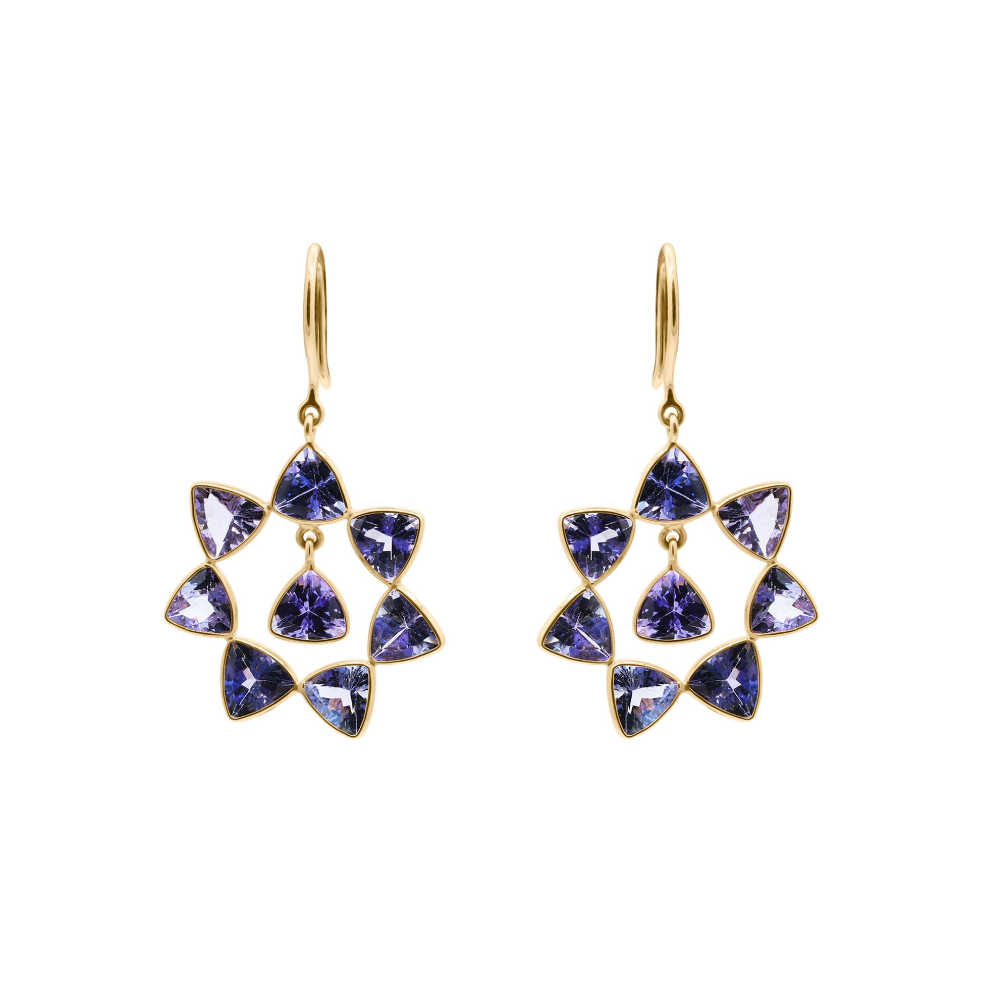 14k Gold Natural Tanzanite Gemstone Drop Dangle Designer Earrings