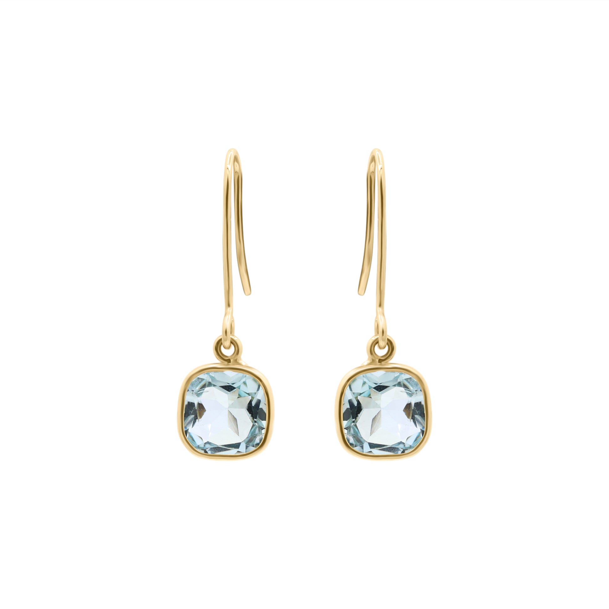 14k Yellow Gold Natural Blue Topaz Gemstone Drop Earrings