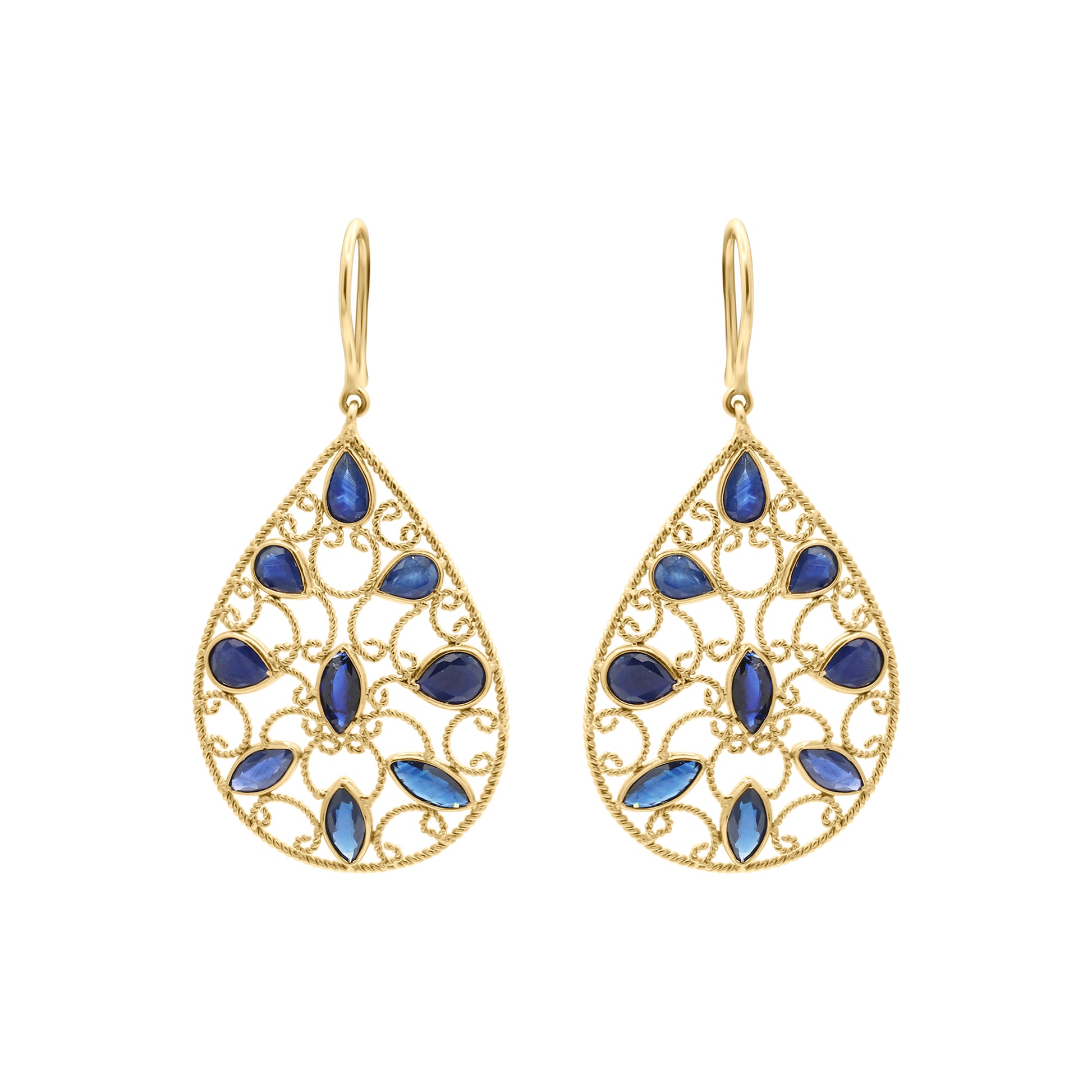 Item Type: 18k Gold Blue Sapphire Gemstone Drop Earring