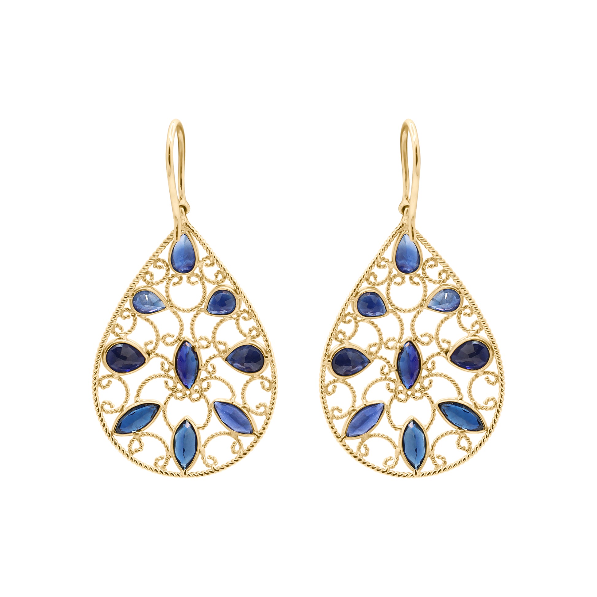 18k Gold Natural Blue Sapphire Gemstone Drop Dangle Earrings
