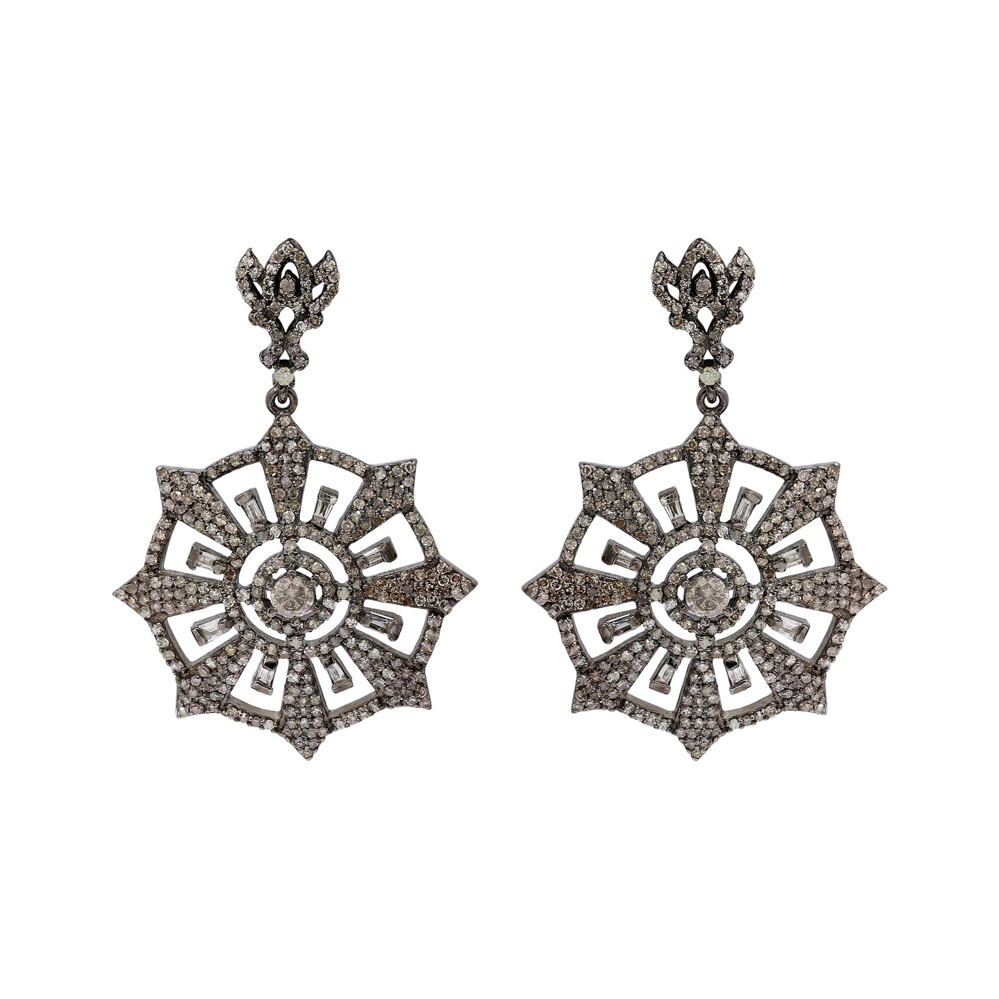 925 Sterling Silver Diamond Designer Drop Dangle Earrings