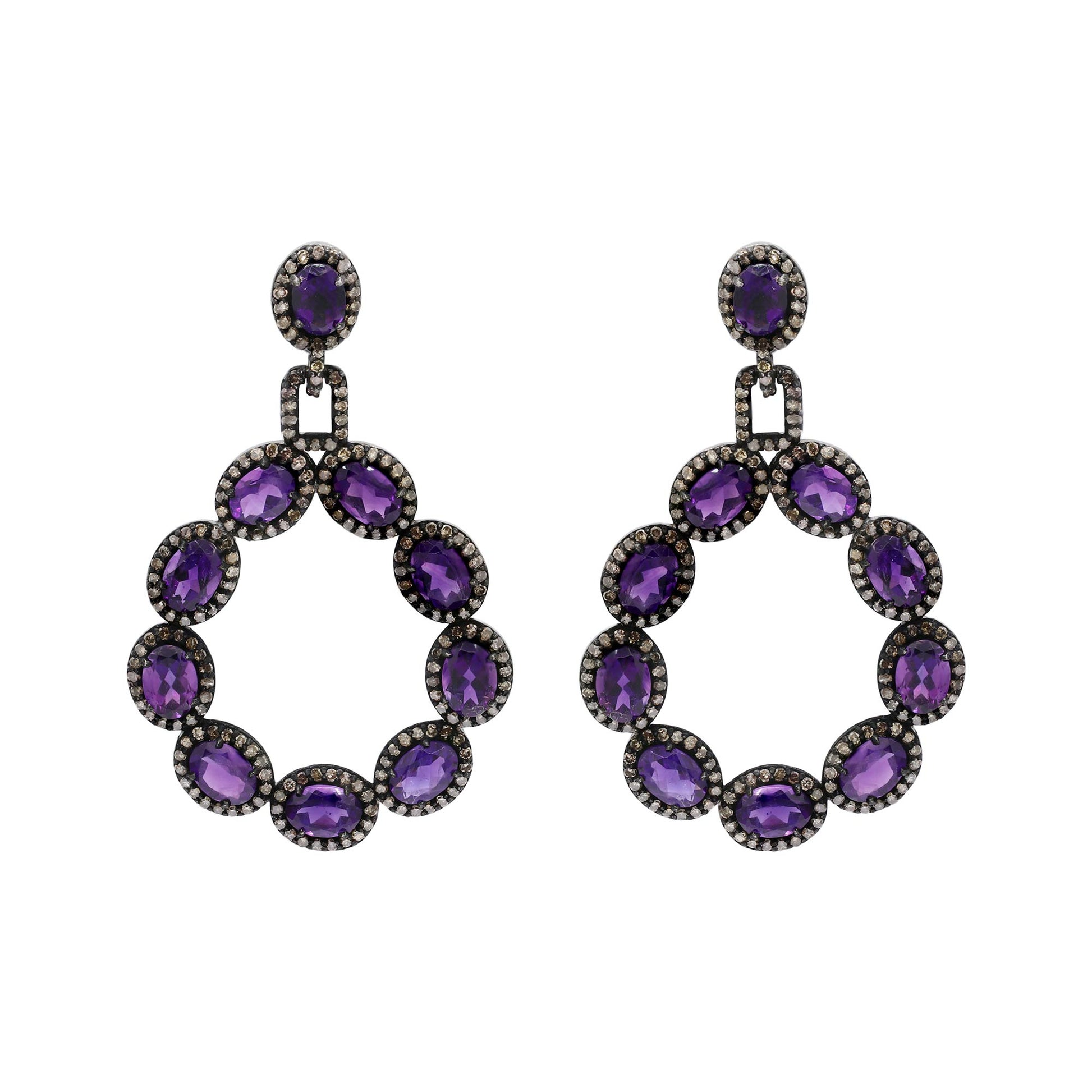 Amethyst And Diamond 925 Sterling Silver Drop Earring