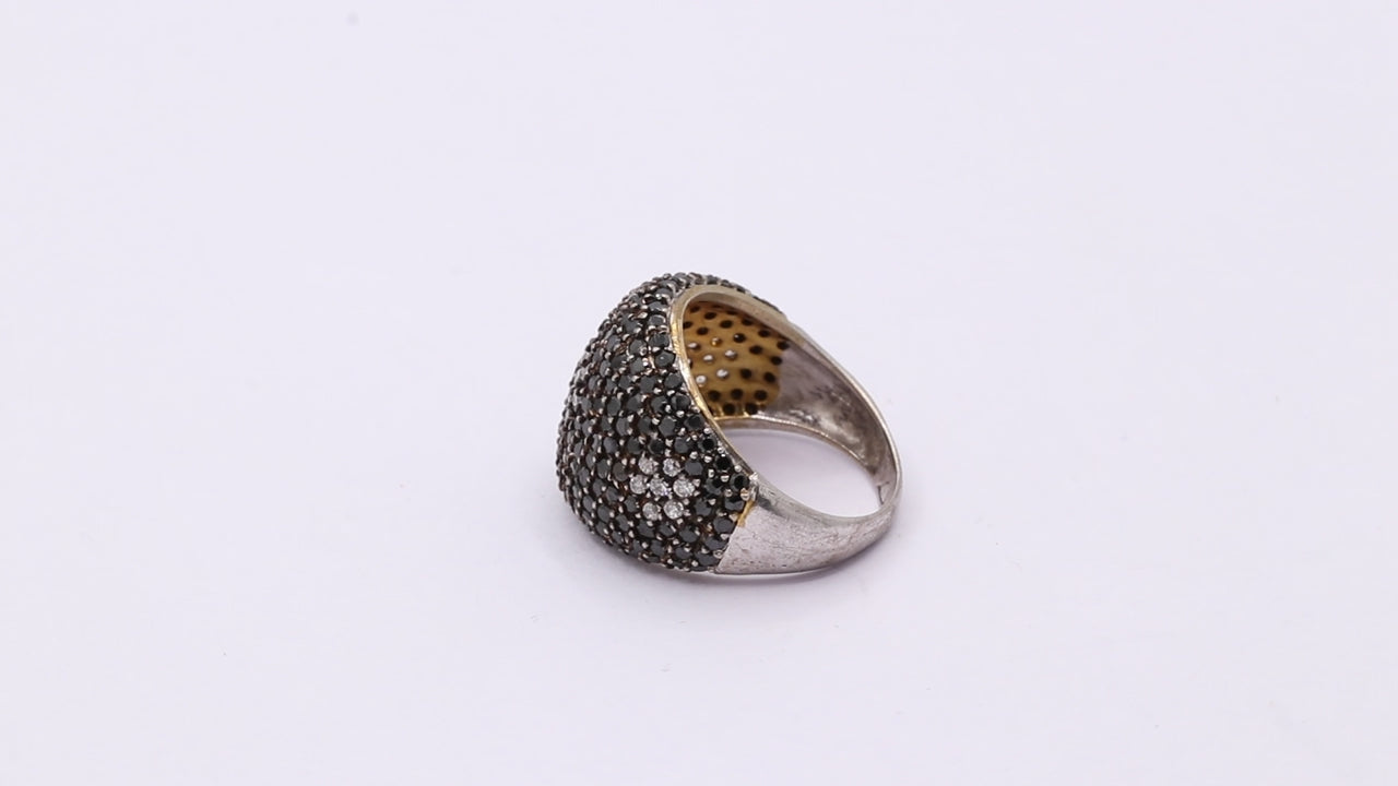 Natural Multi-Black Spinel & Cubic Zircon 925 Silver Gold Plated Ring
