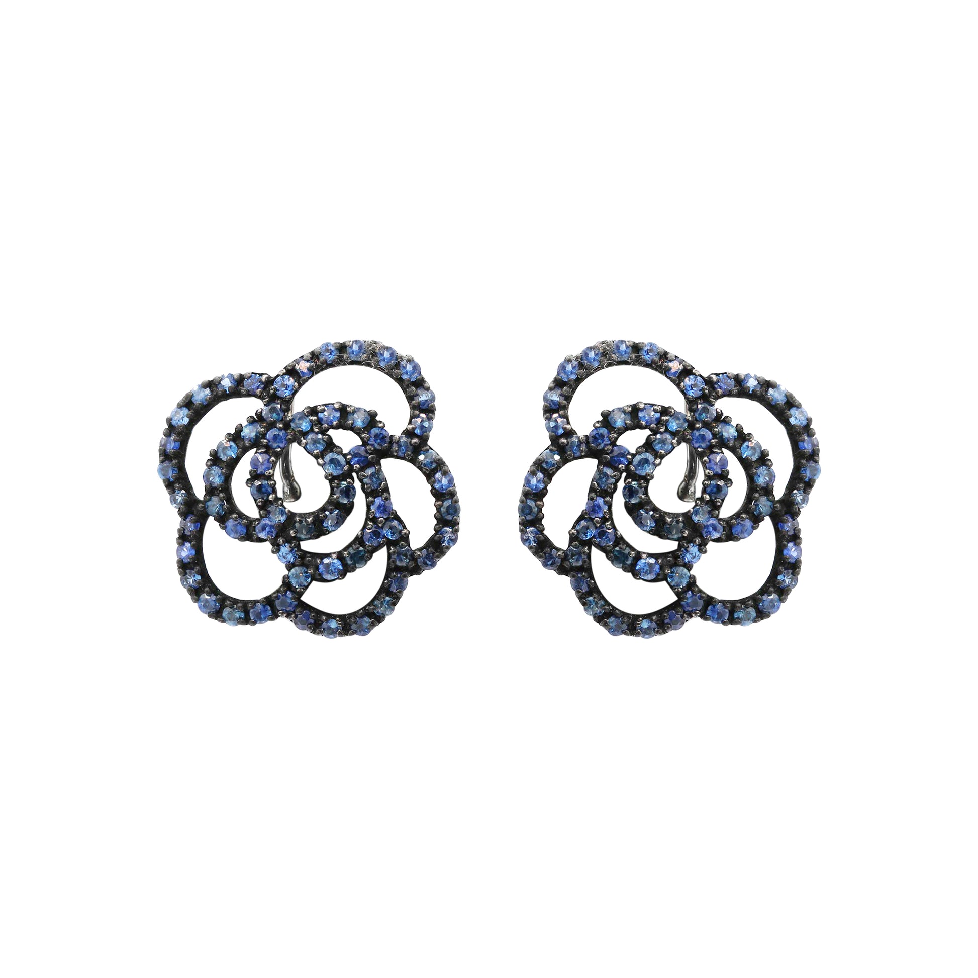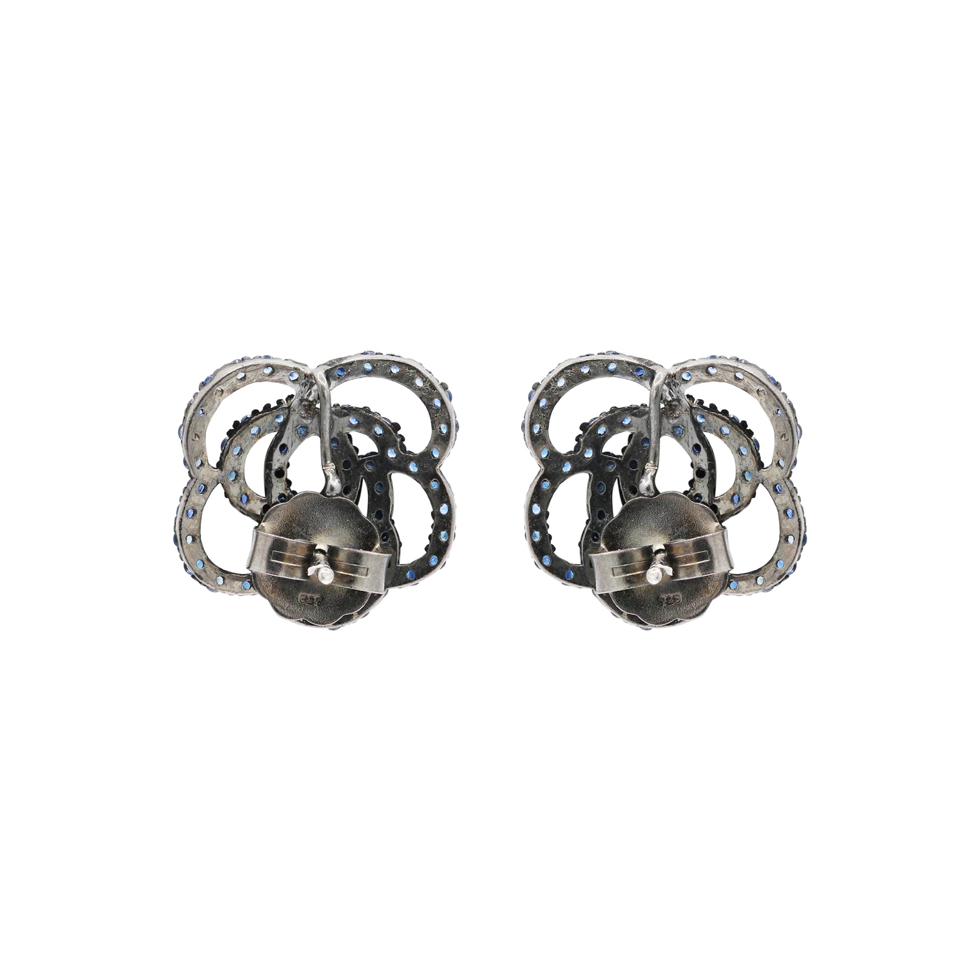 Natural Blue Sapphire Gemstone 925 Sterling Silver Designer Floral Earring