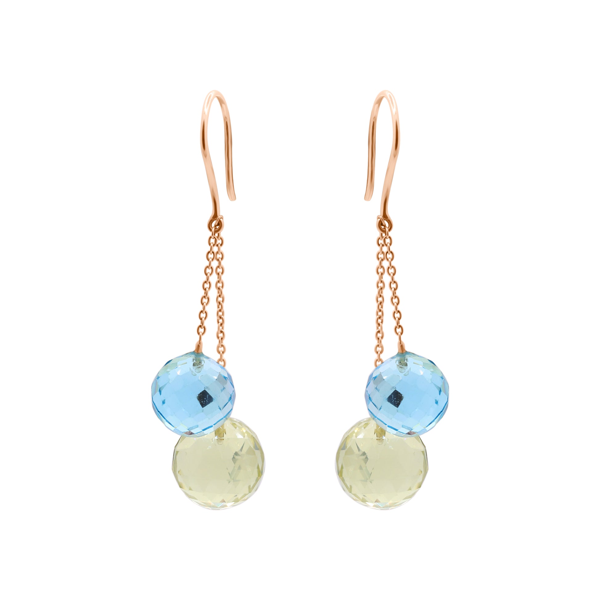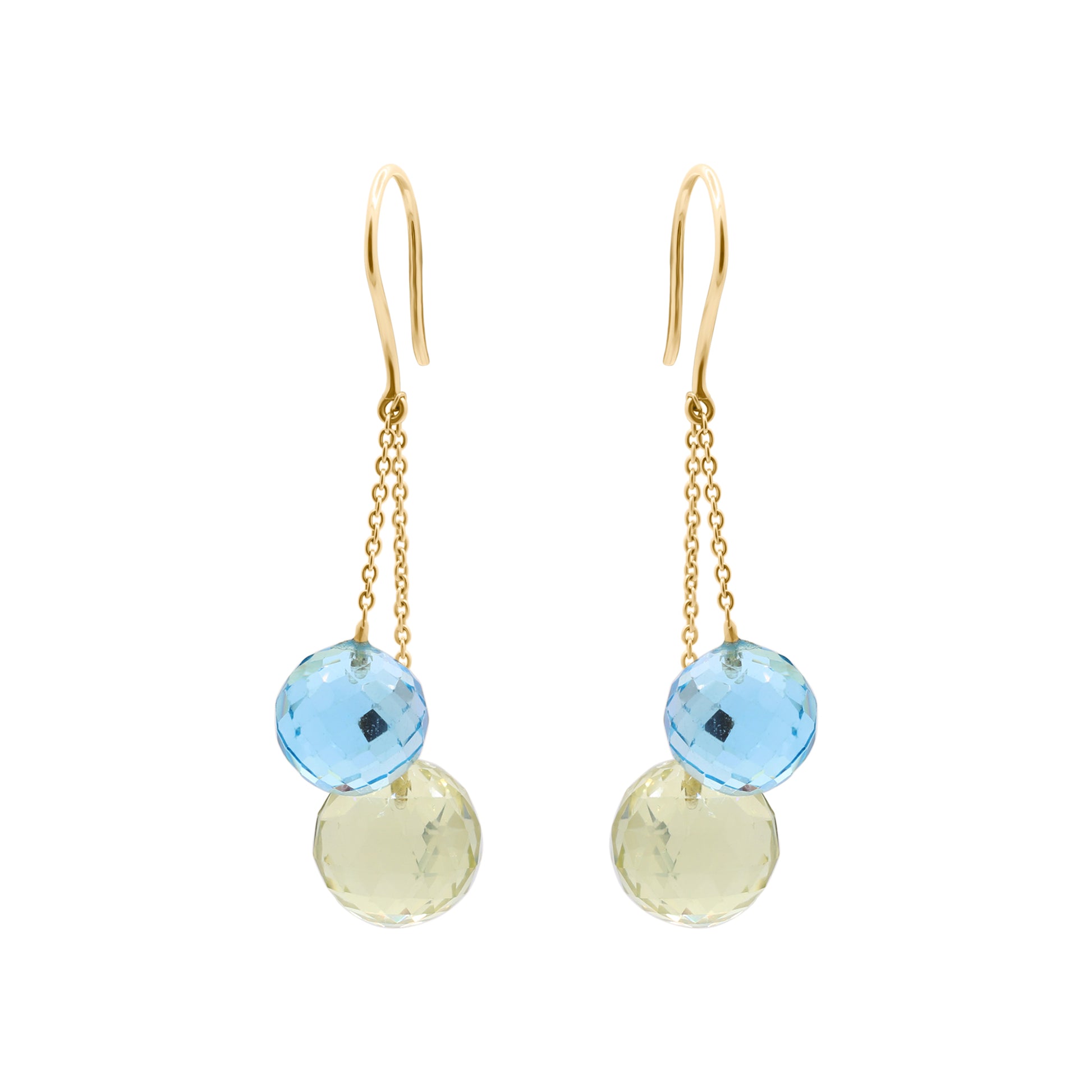 Item Type: 18k Gold Blue Topaz And Lemon Quartz Gemstone Drop Earring