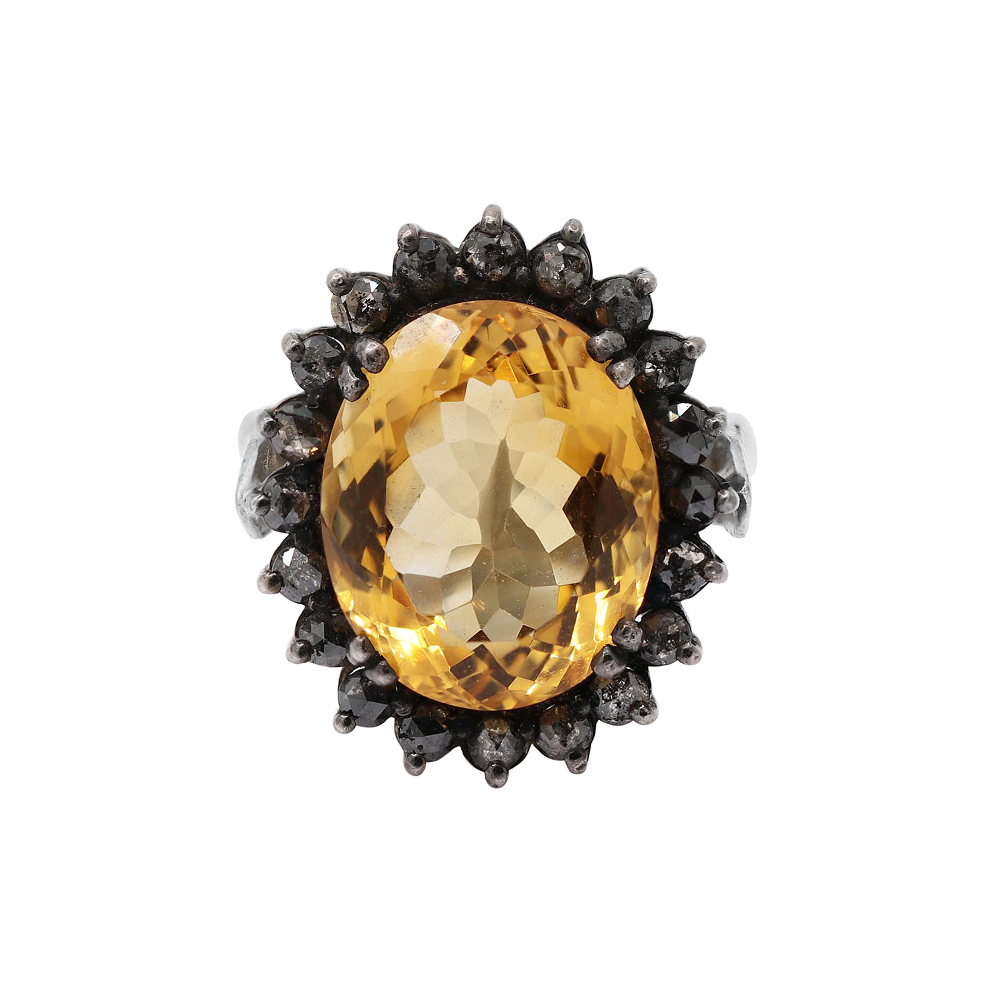 Natura Citrine With Black Diamond 925 Sterling Silver Ring