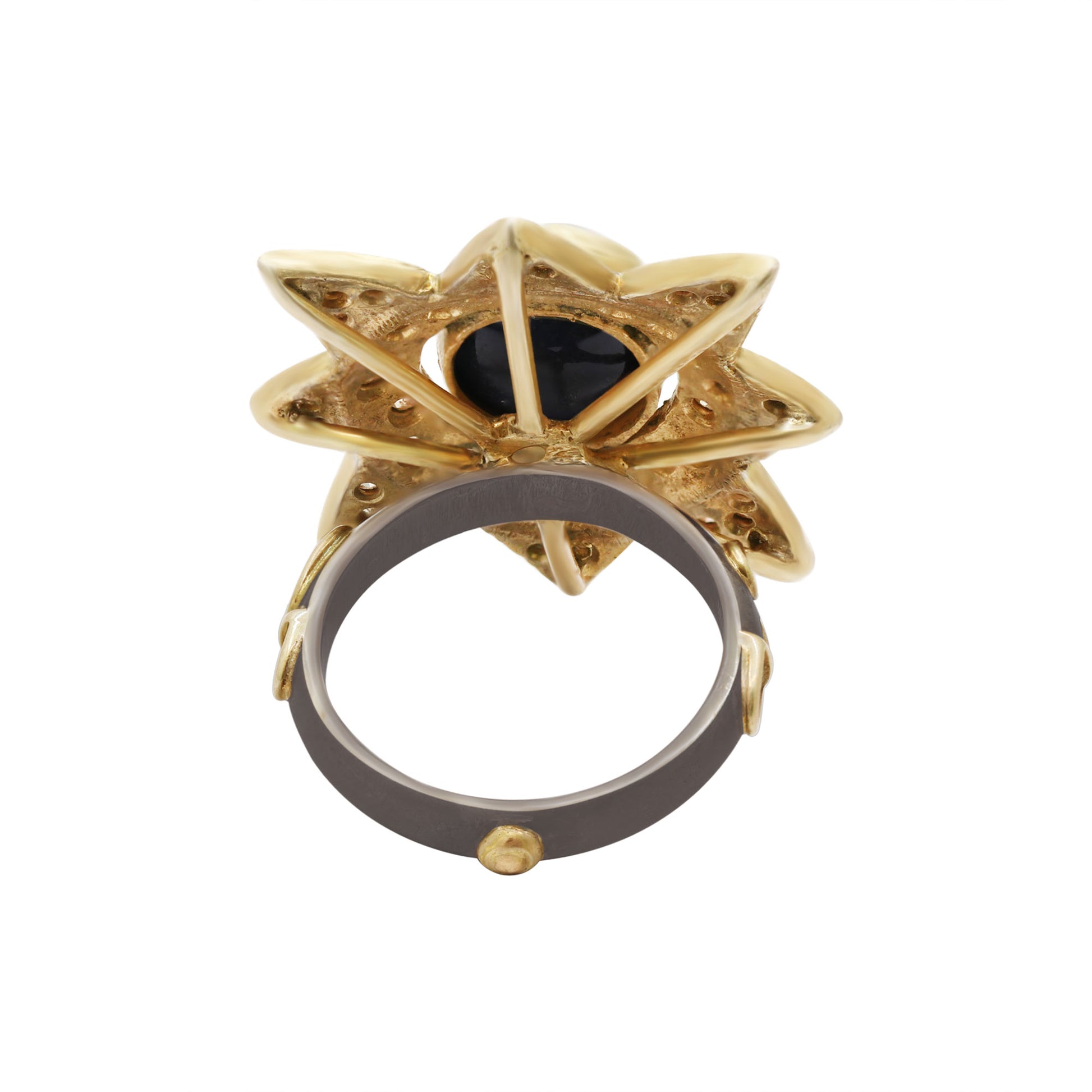 Star Natural Blue Sapphire With Diamond 925 Sterling Silver Black Rhodium Ring