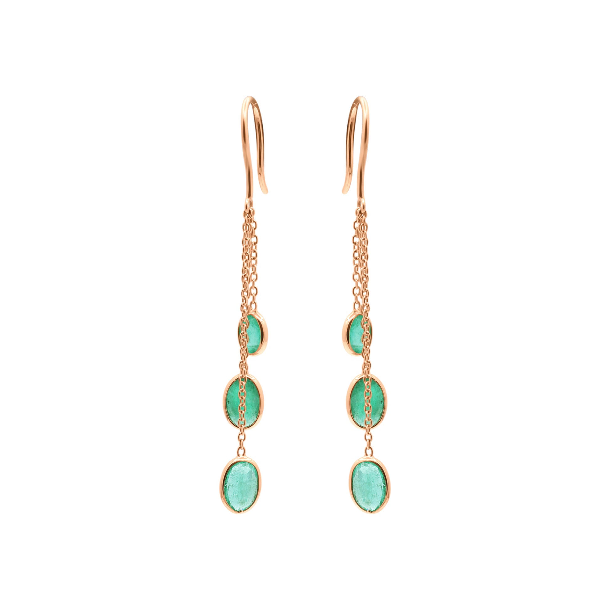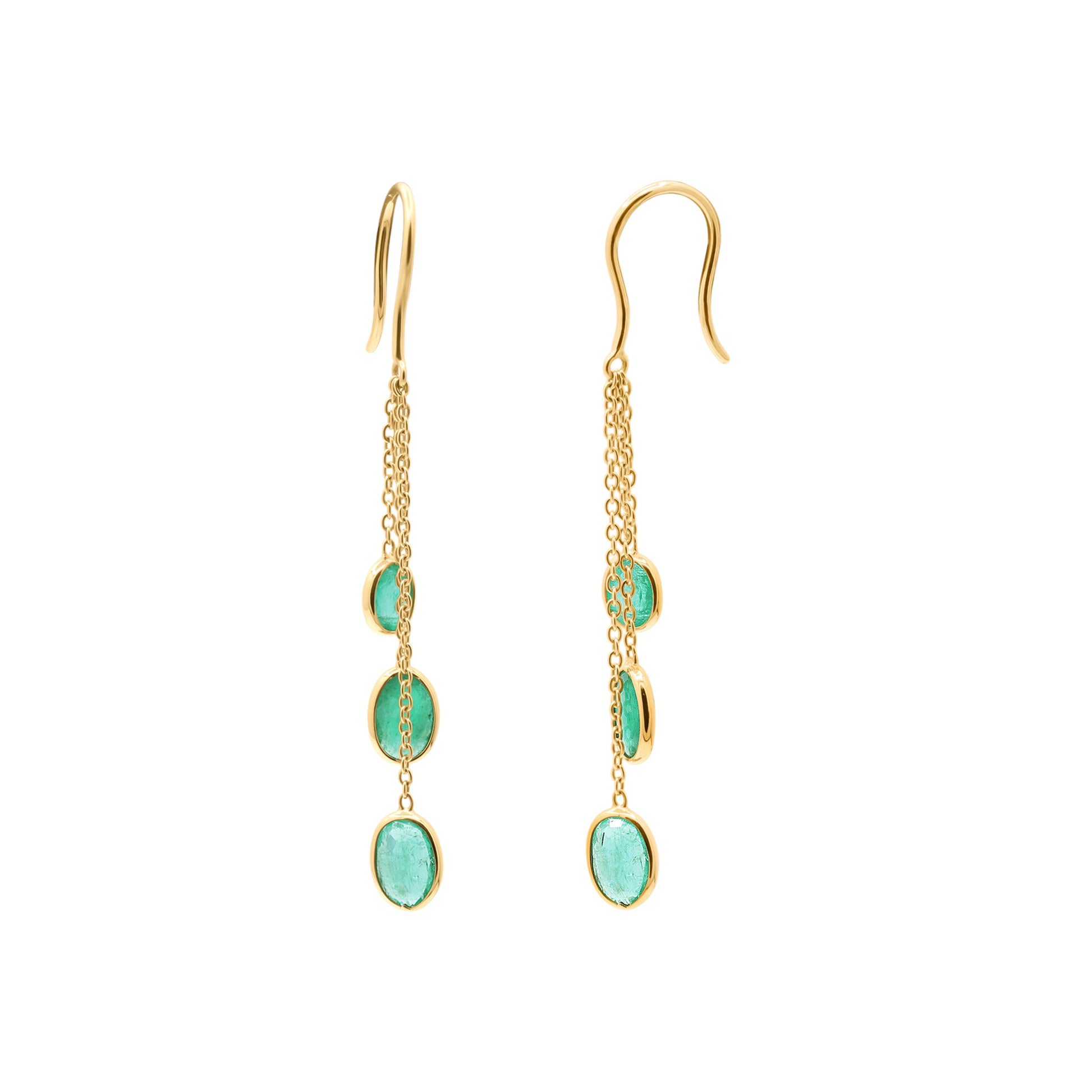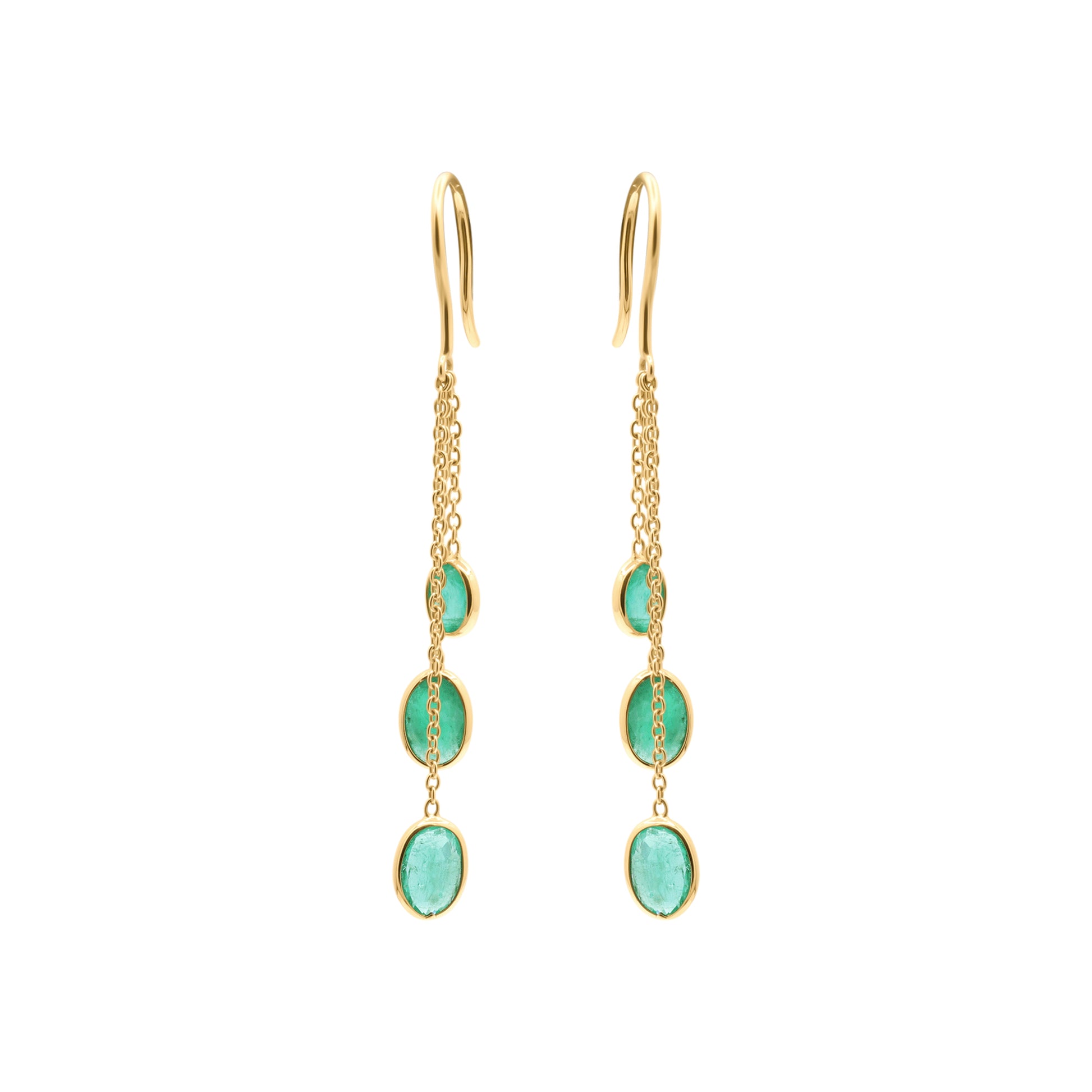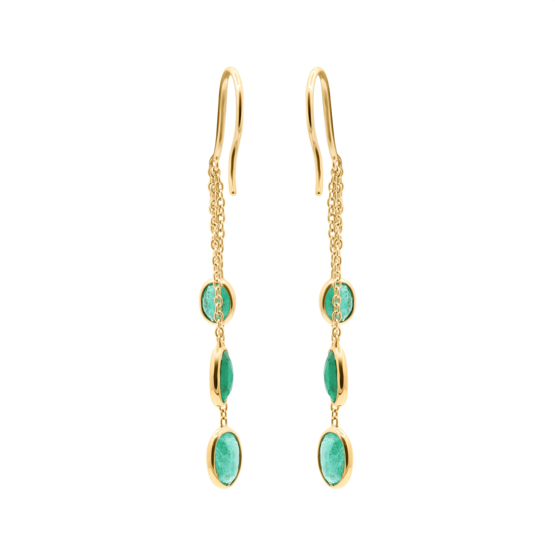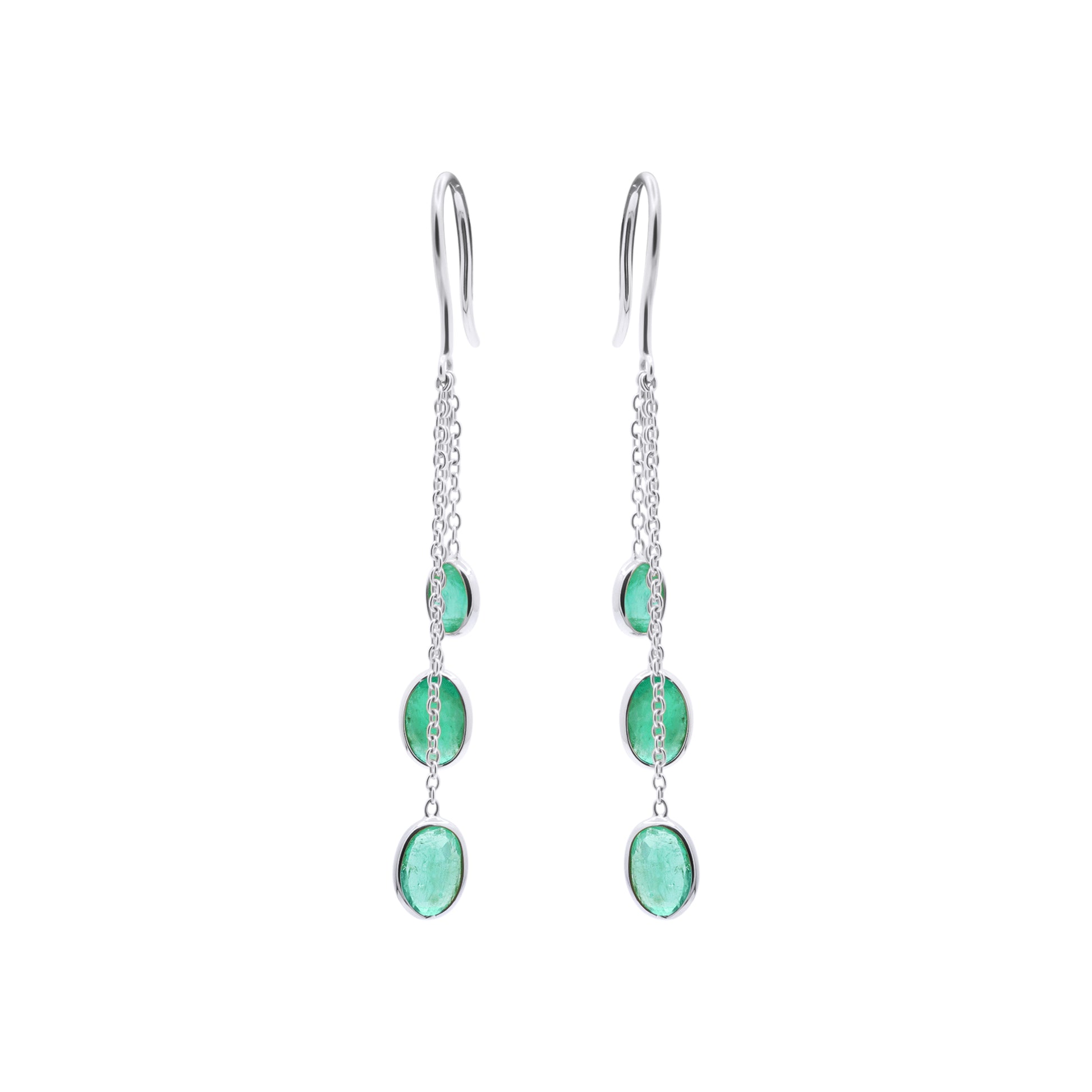 Precious Oval Cut Emerald Gemstone Drop Dangle Earrings In 14k Gold