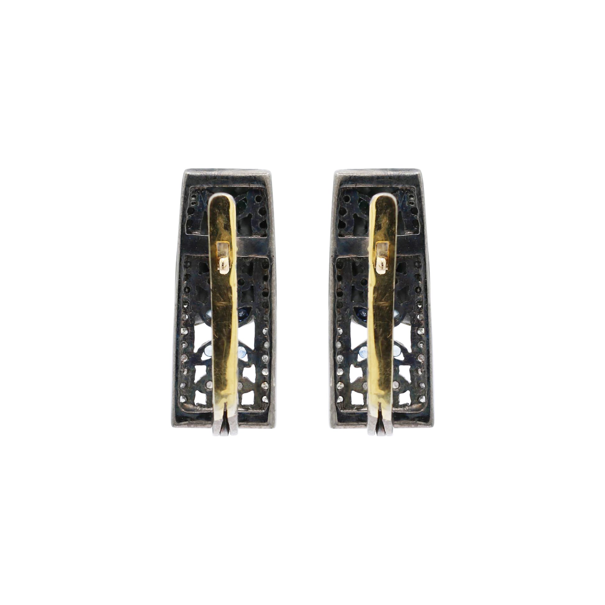 Natural Diamond And Blue Sapphire 925 Silver Earrings