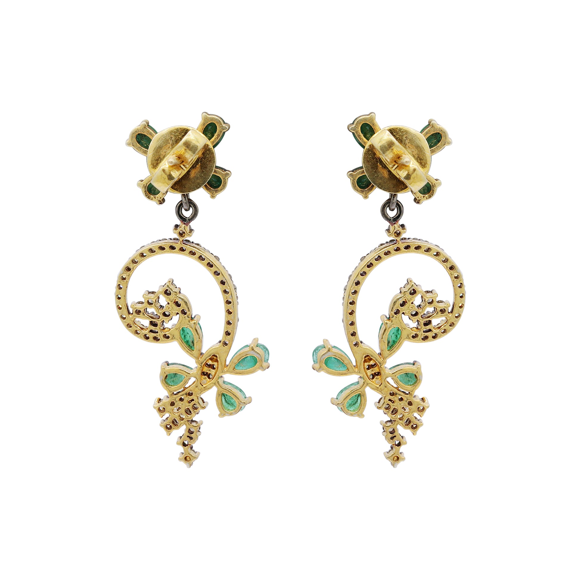 Natural Emerald Gemstone And Diamond Drop Earring 925 Sterling Silver