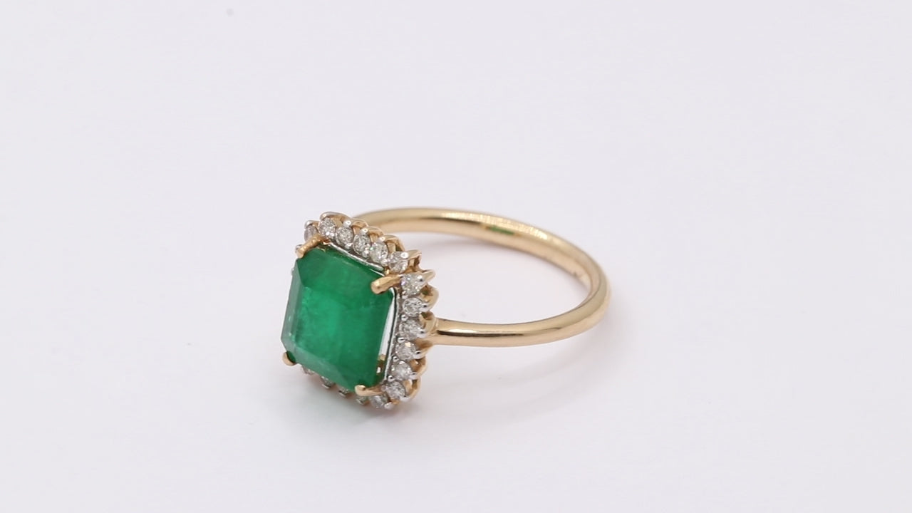 Precious Emerald Gemstone With Diamond Yellow Gold Ring In 14k Gold