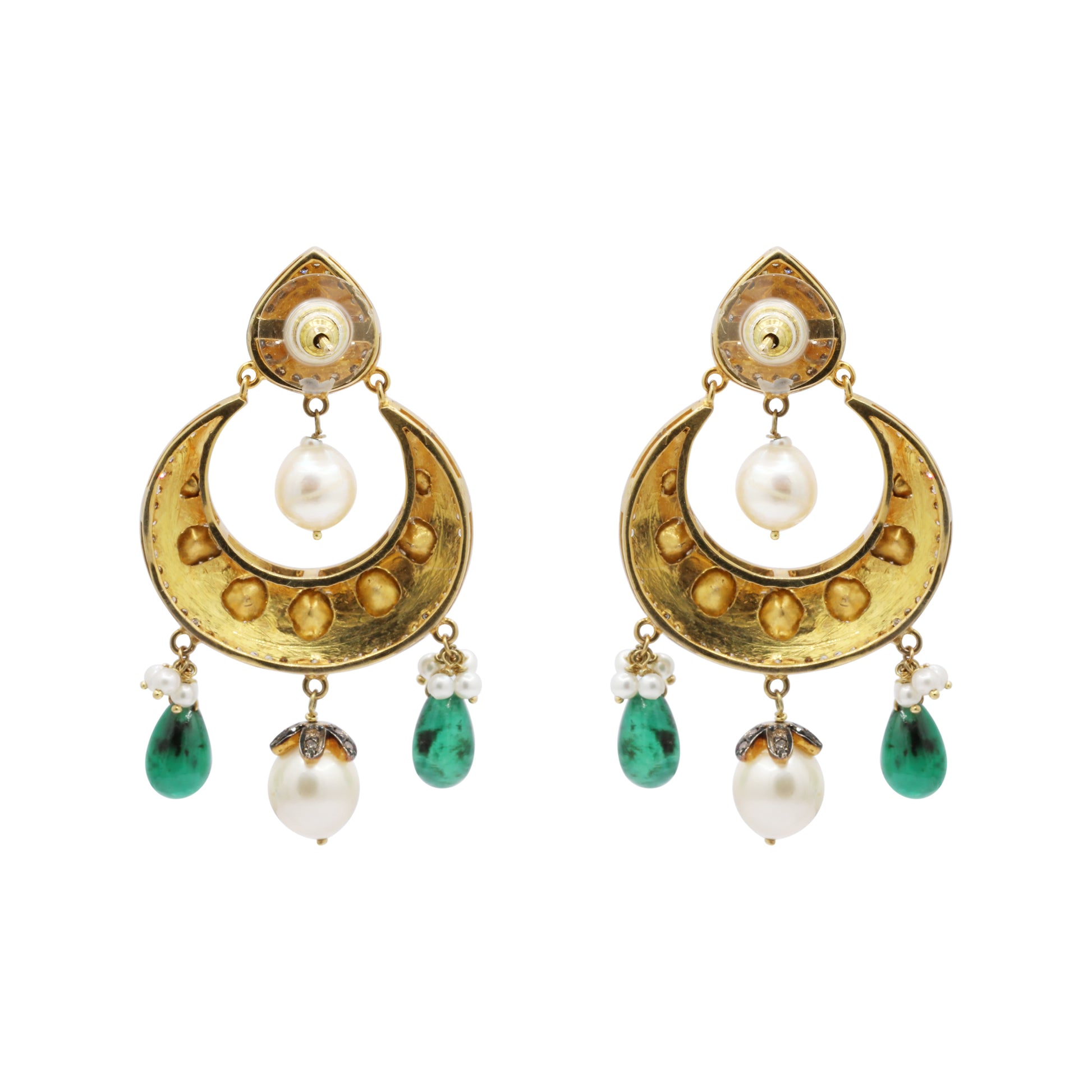 Item Type: Emerald, Pearl And Polki Diamond Silver Earring