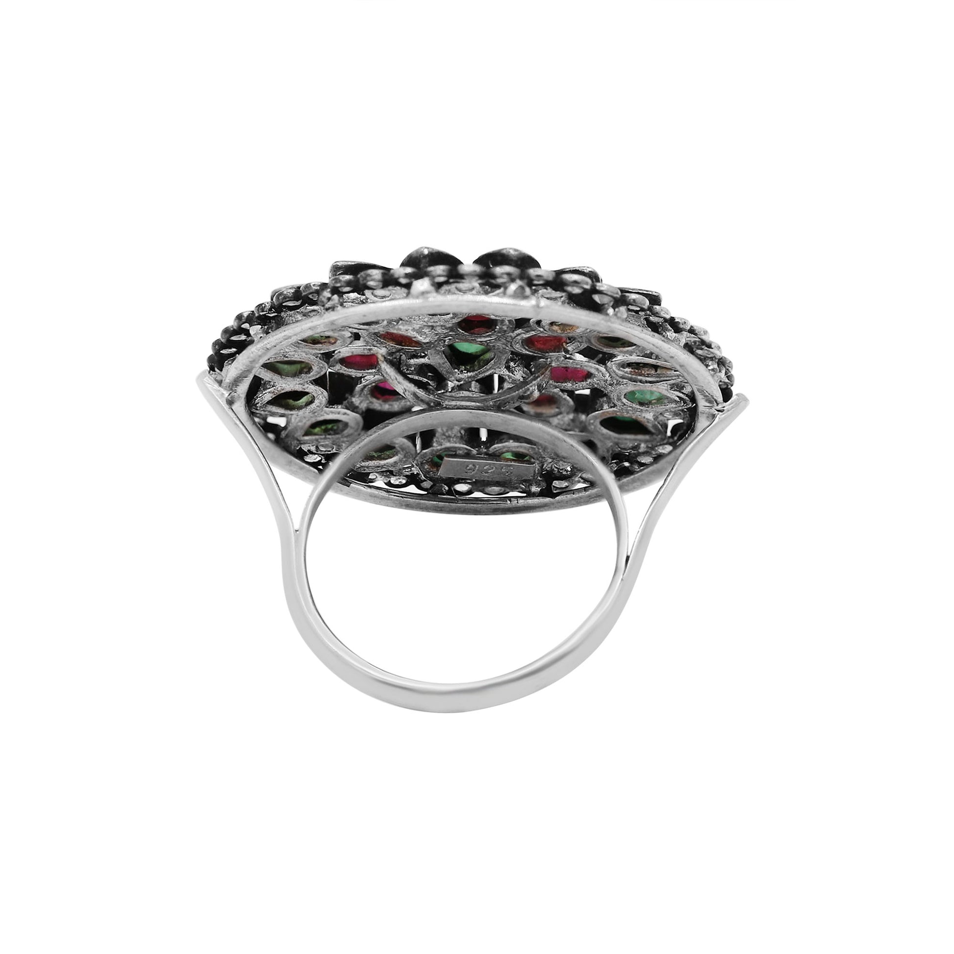 Natural Emerald, Ruby, Diamond 925 Silver Ring