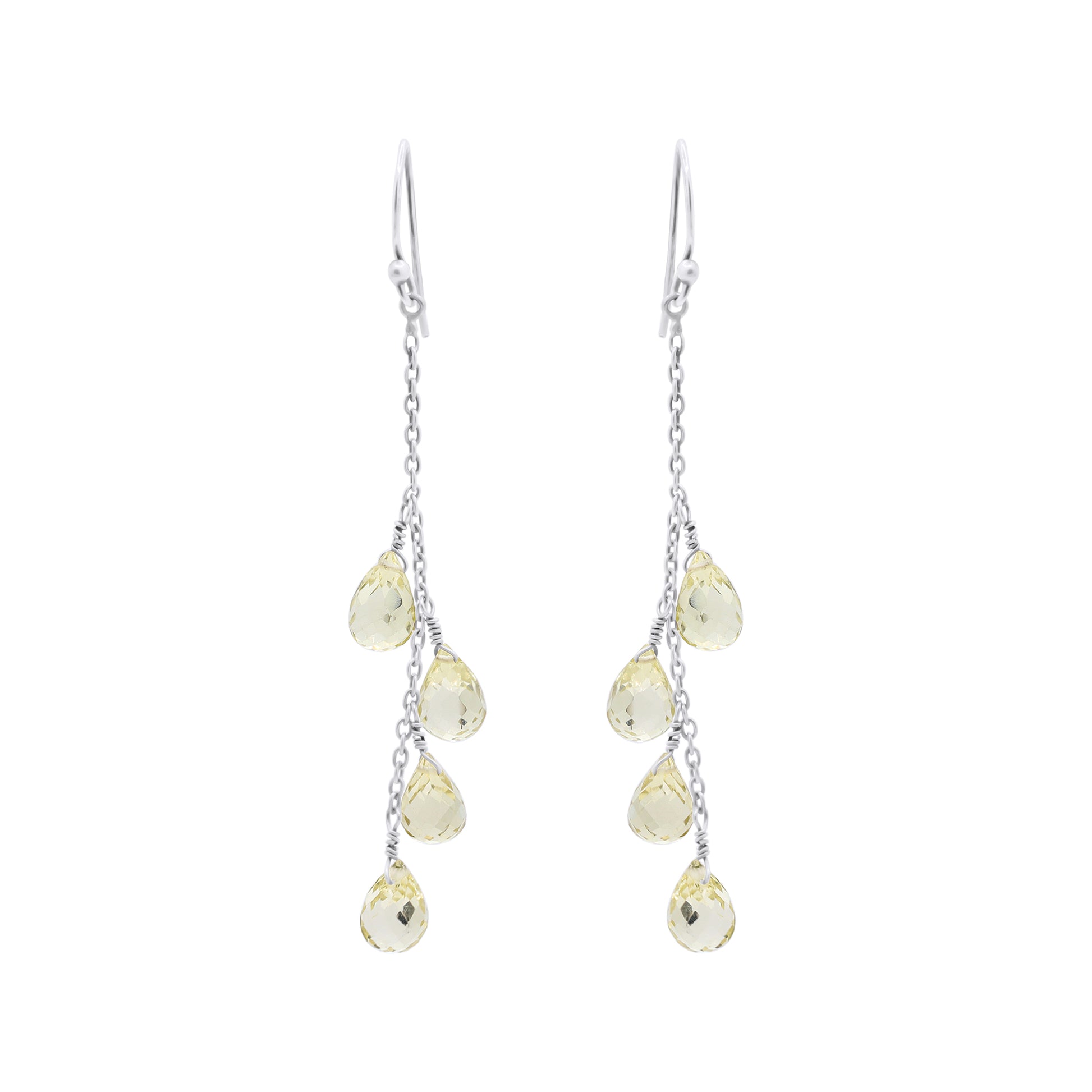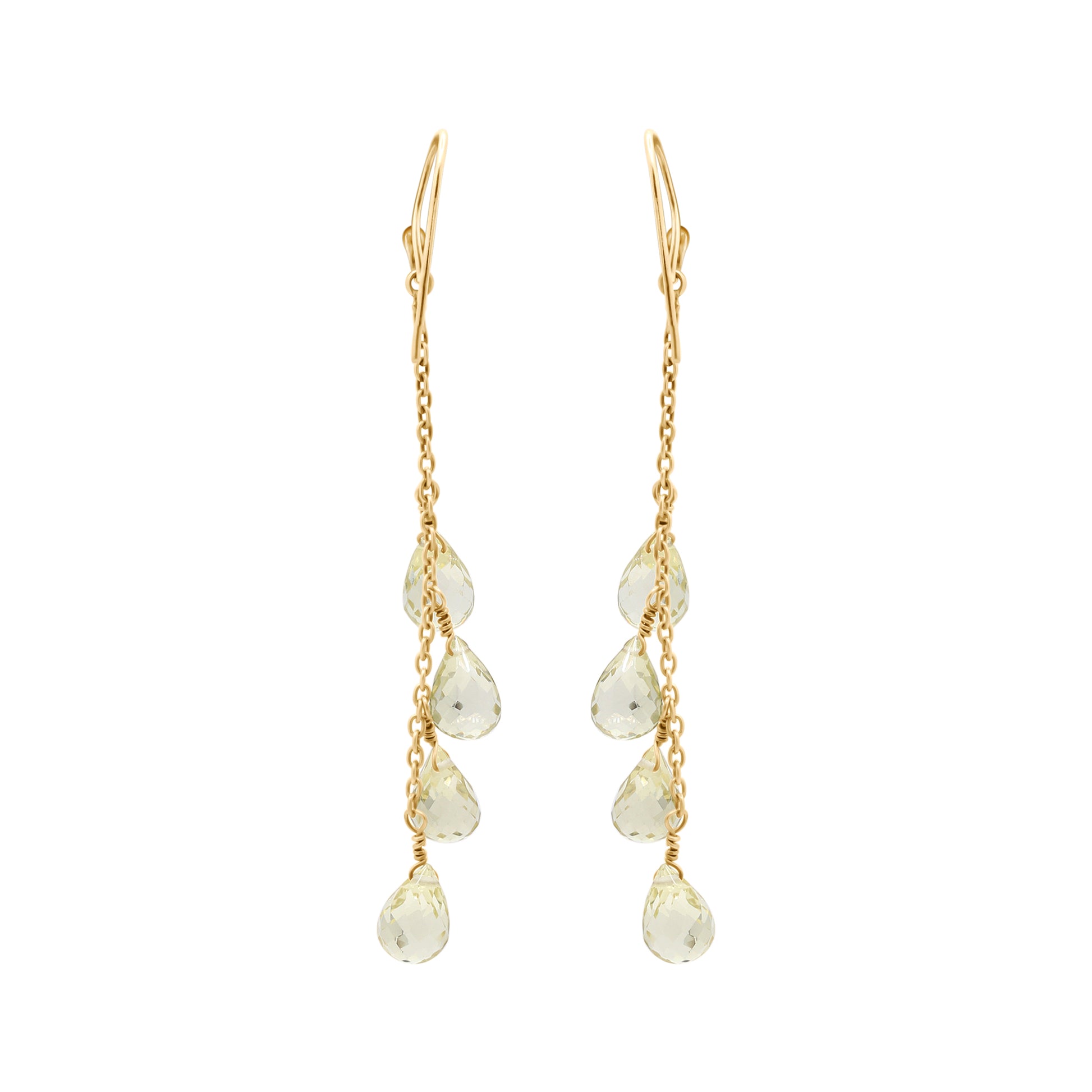 Natural Lemon Quartz Tear Drop Gemstone Earrings In 18k Gold