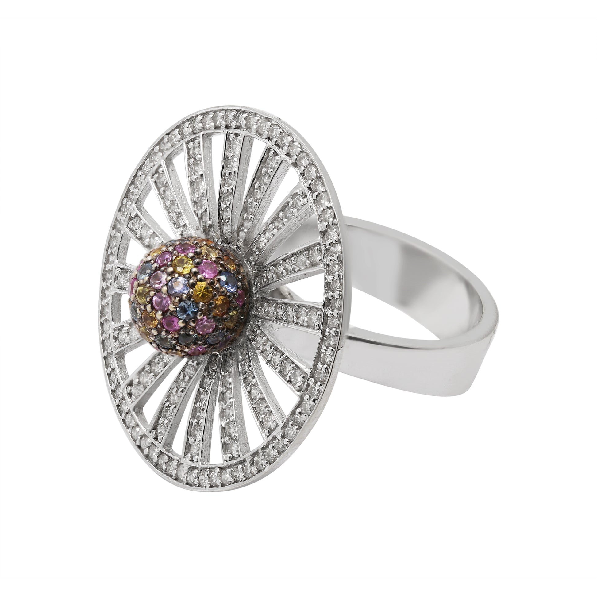 Multi-Sapphire & Diamond 18k White Gold Designer Ring