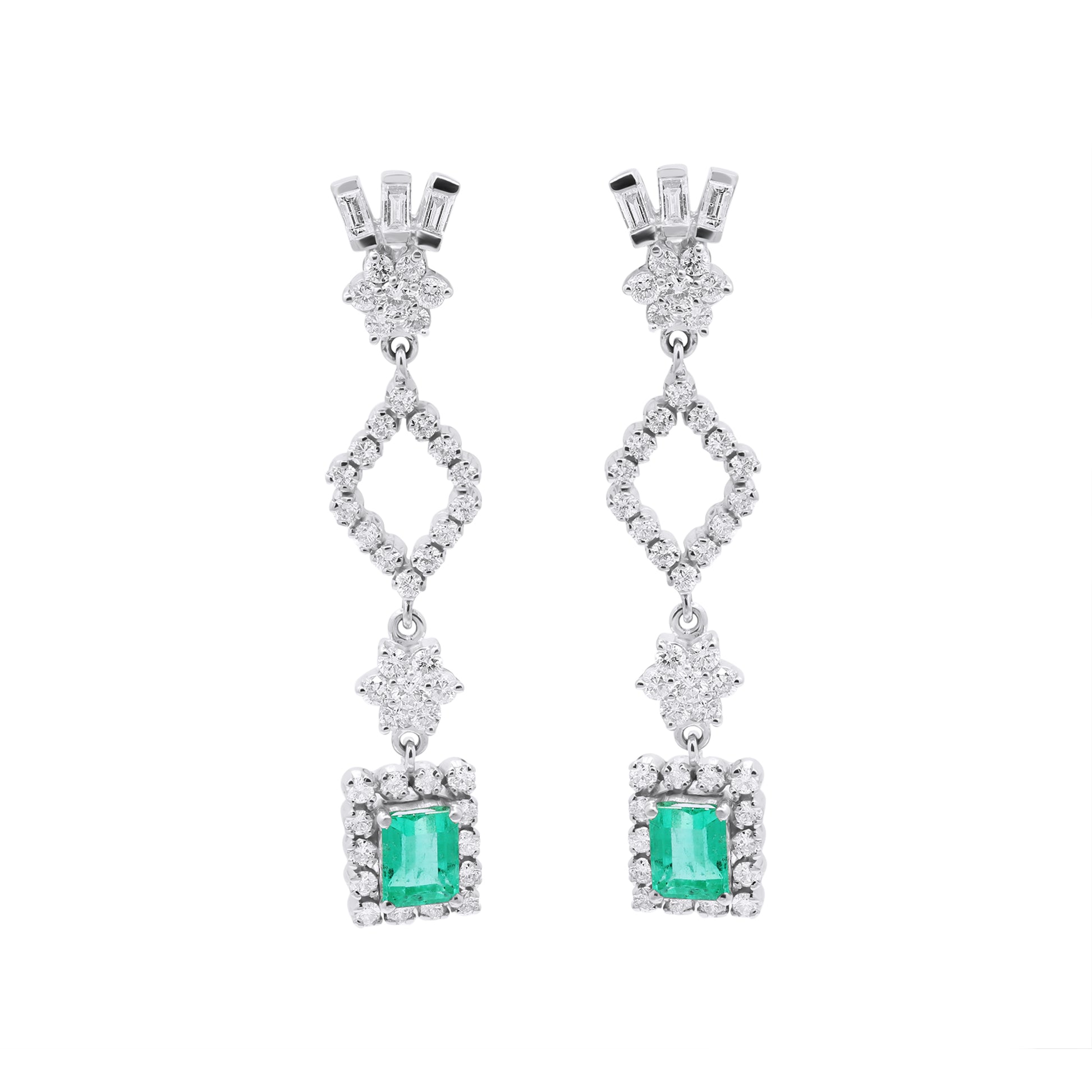 Natural Emerald And Diamond 18k White Gold Drop Dangle Earring