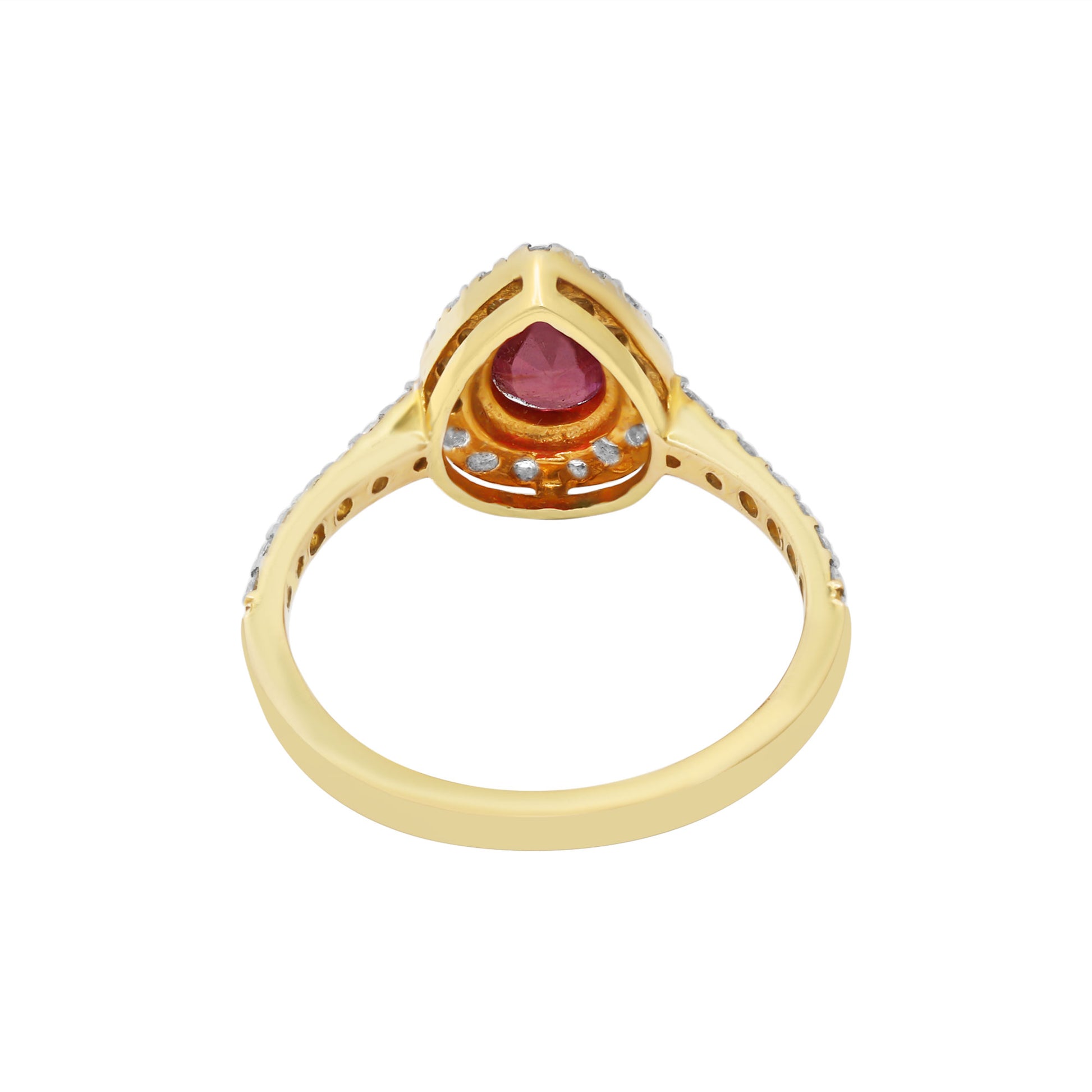 Natural Pear Ruby With Diamond Ring In 14k Yellow Gold