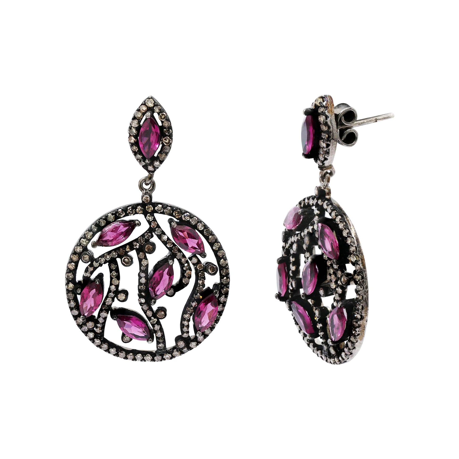 Ruby & Diamond 925 Sterling Silver Drop Earring