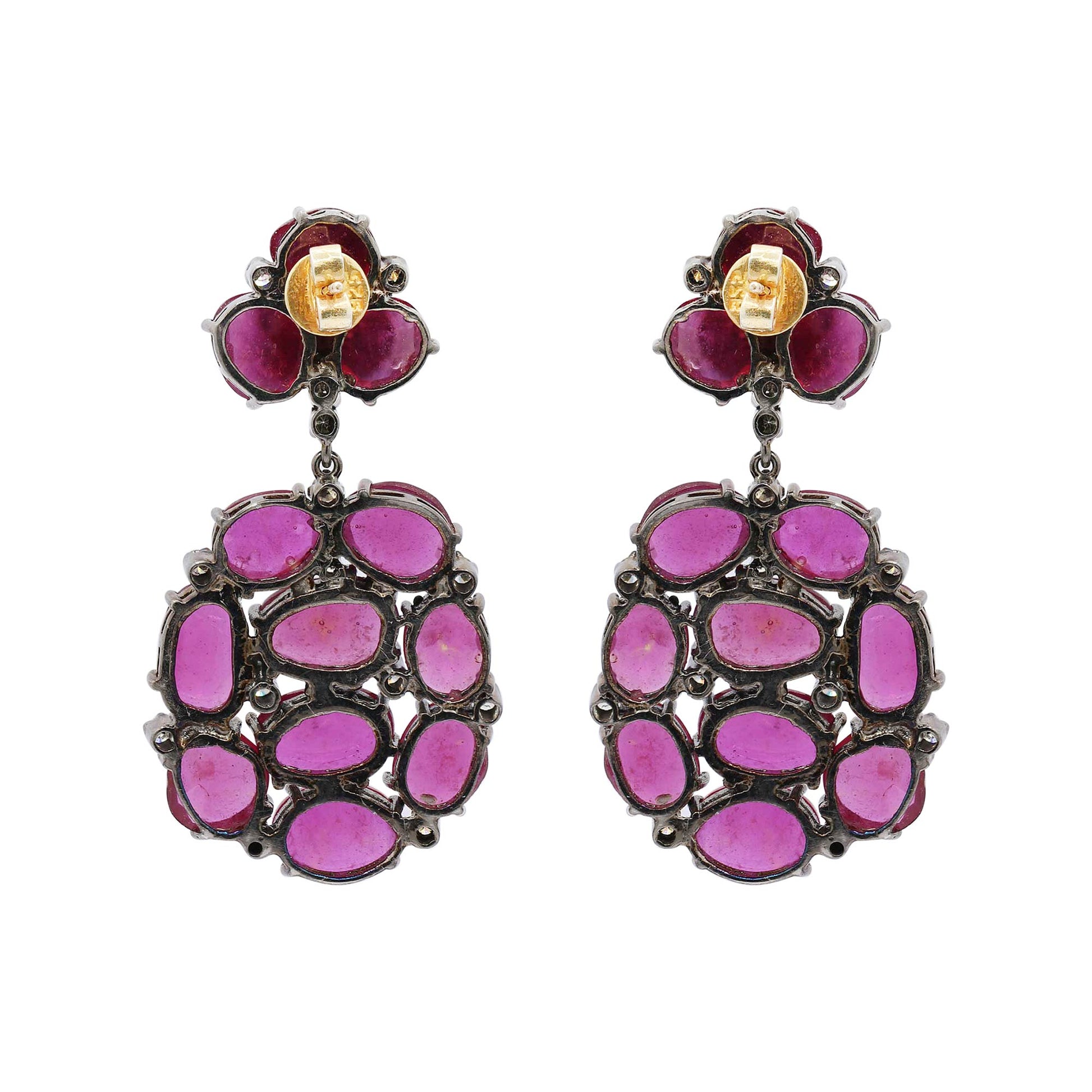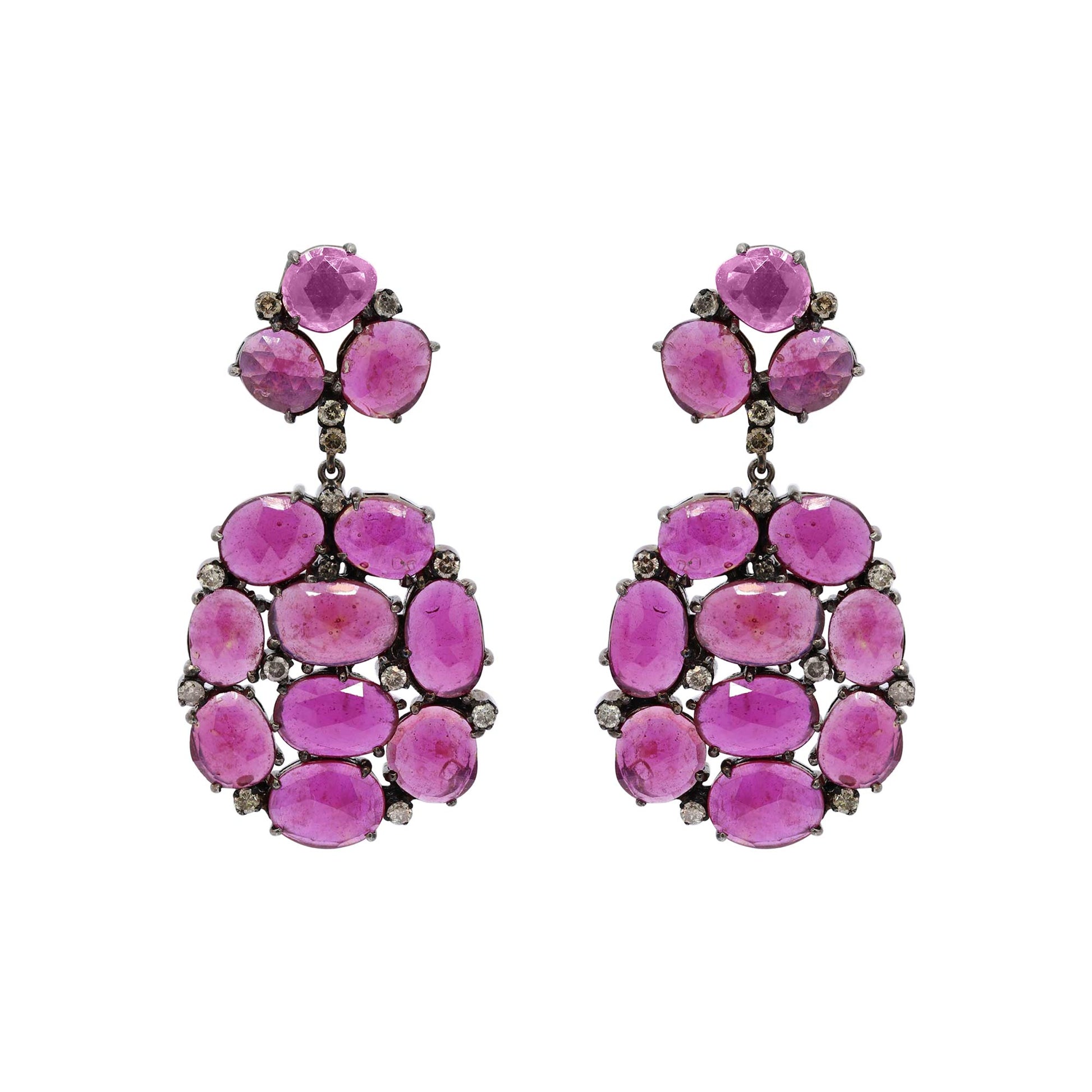 Ruby And Diamond 925 Sterling Silver Drop Earring