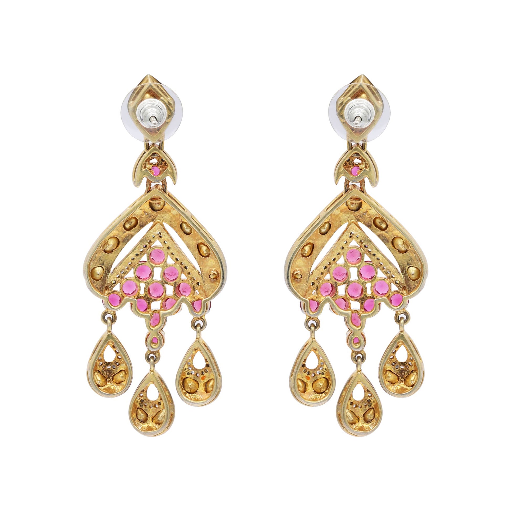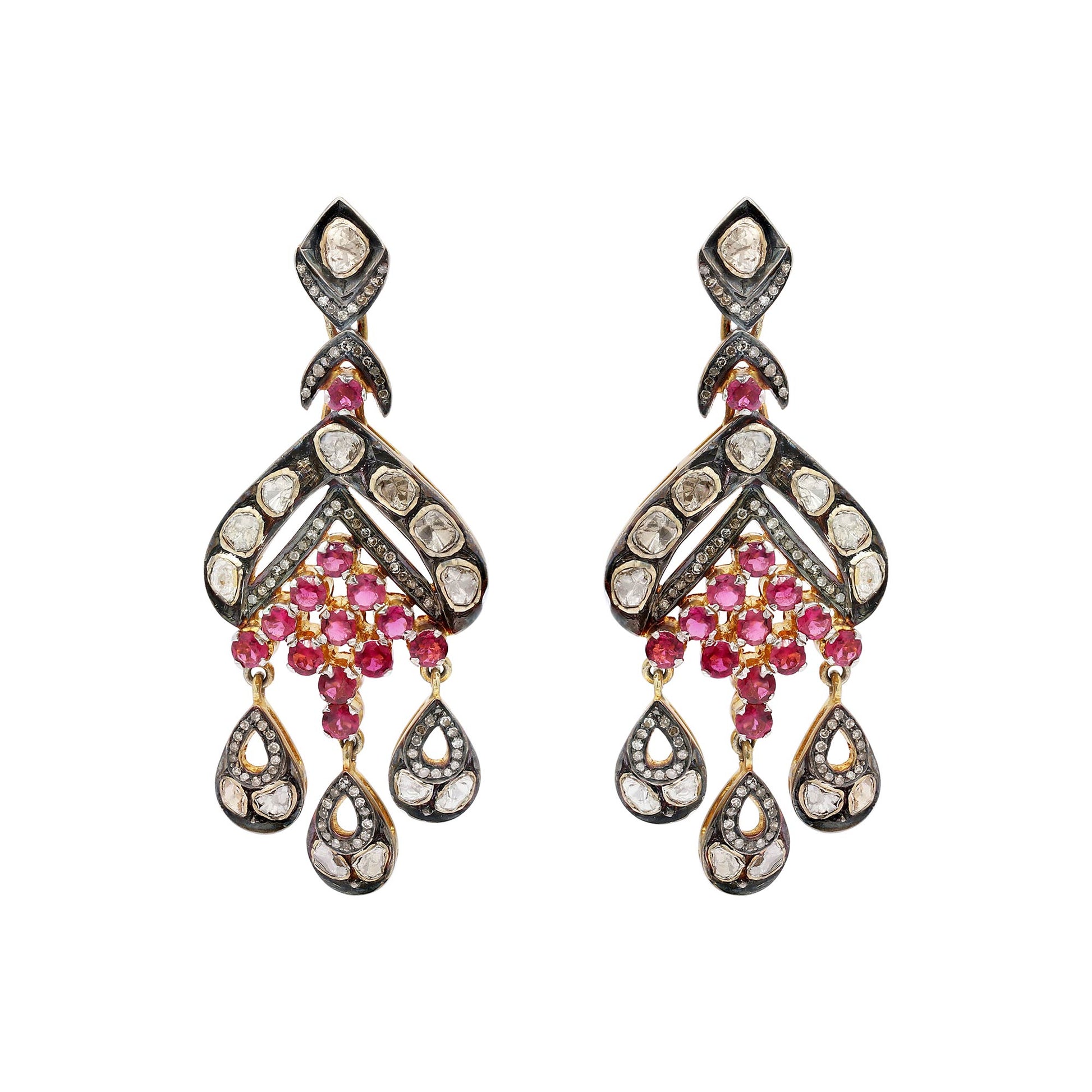 Ruby & Polki Diamond 925 Sterling Silver Drop Earring