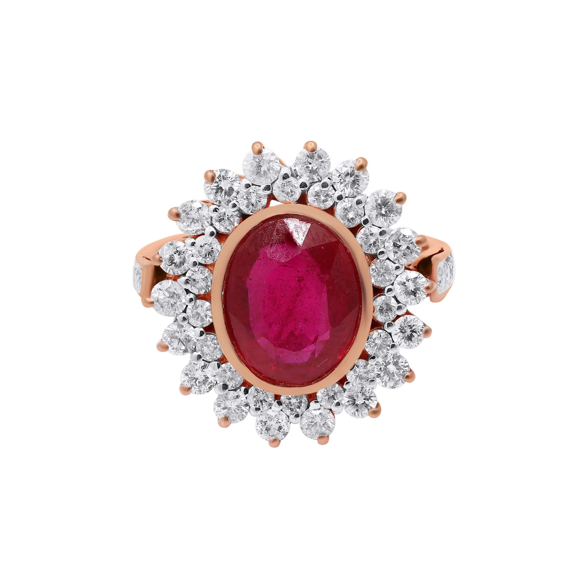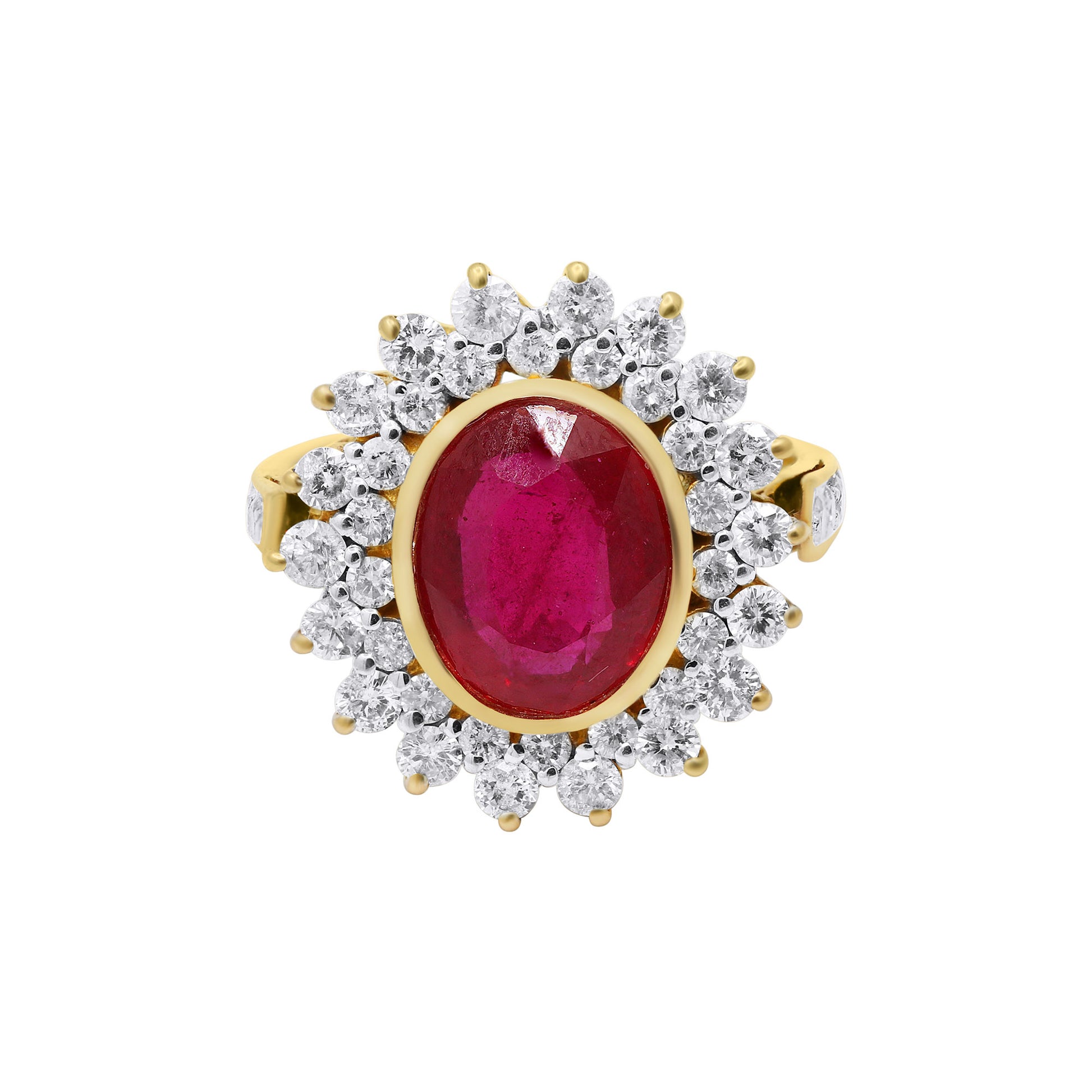 Natural Oval Cut Ruby With Diamond Yellow Gold Designer Ring In 18k Yellow Gold