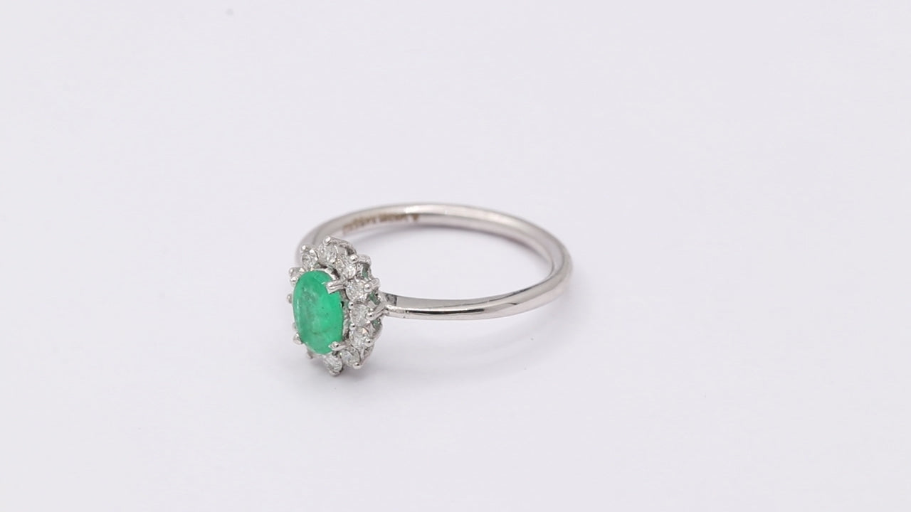 Oval Shaped Natural Emerald Gemstone With Diamond Ring In 14k White Gold