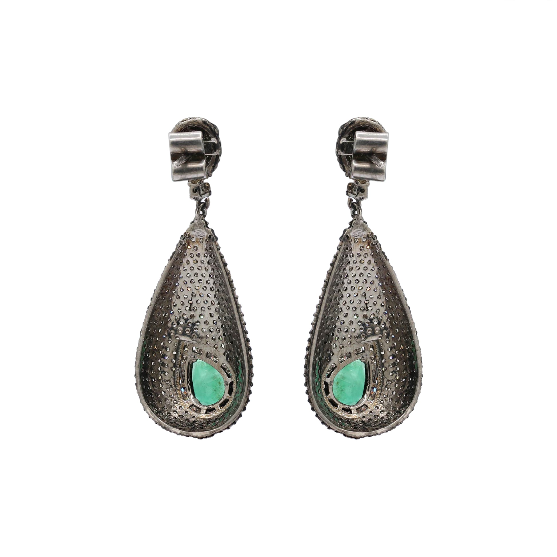 Precious Pear Emerald And Diamond 925 Sterling Silver Drop Earring
