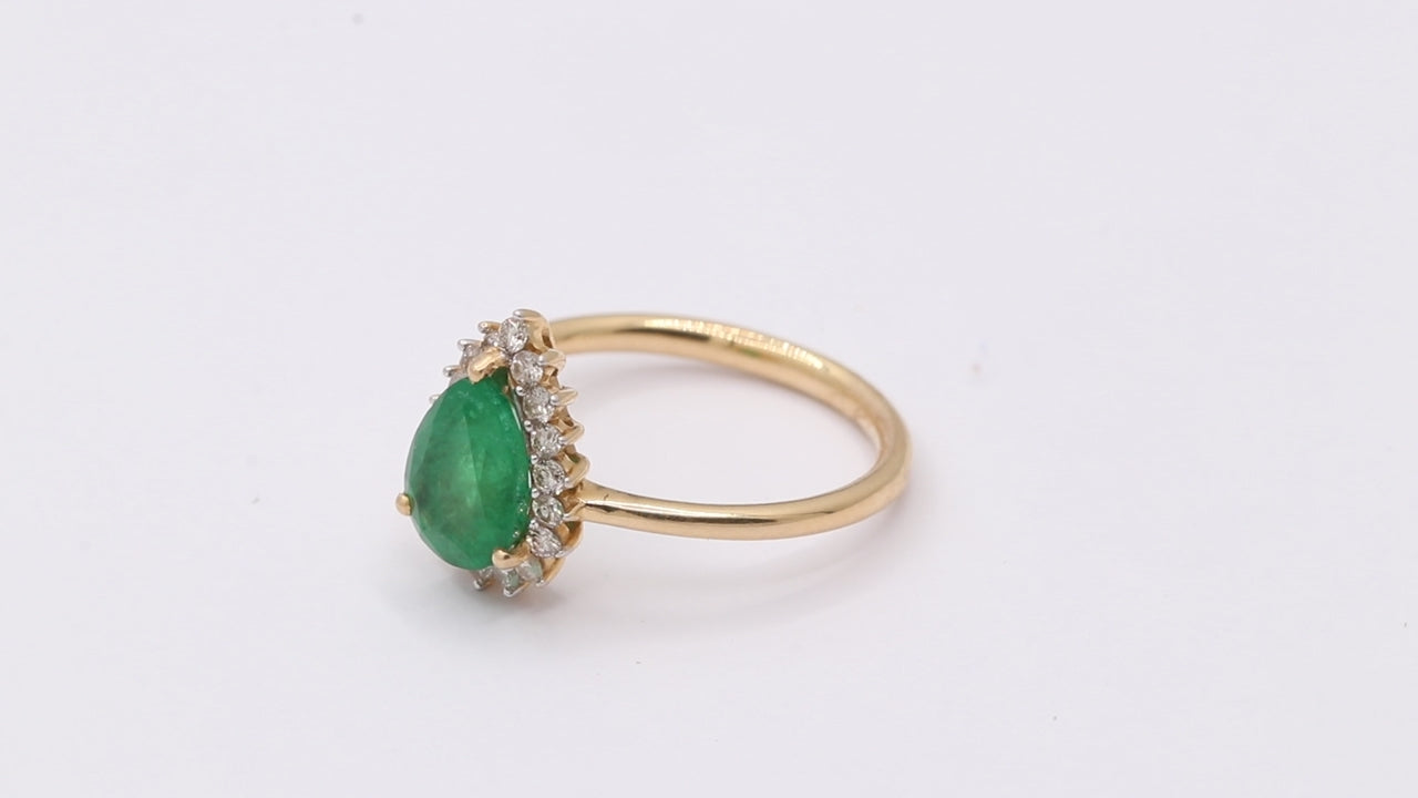 14k Yellow Gold Natural Pear Cut Emerald Gemstone With Diamond Ring