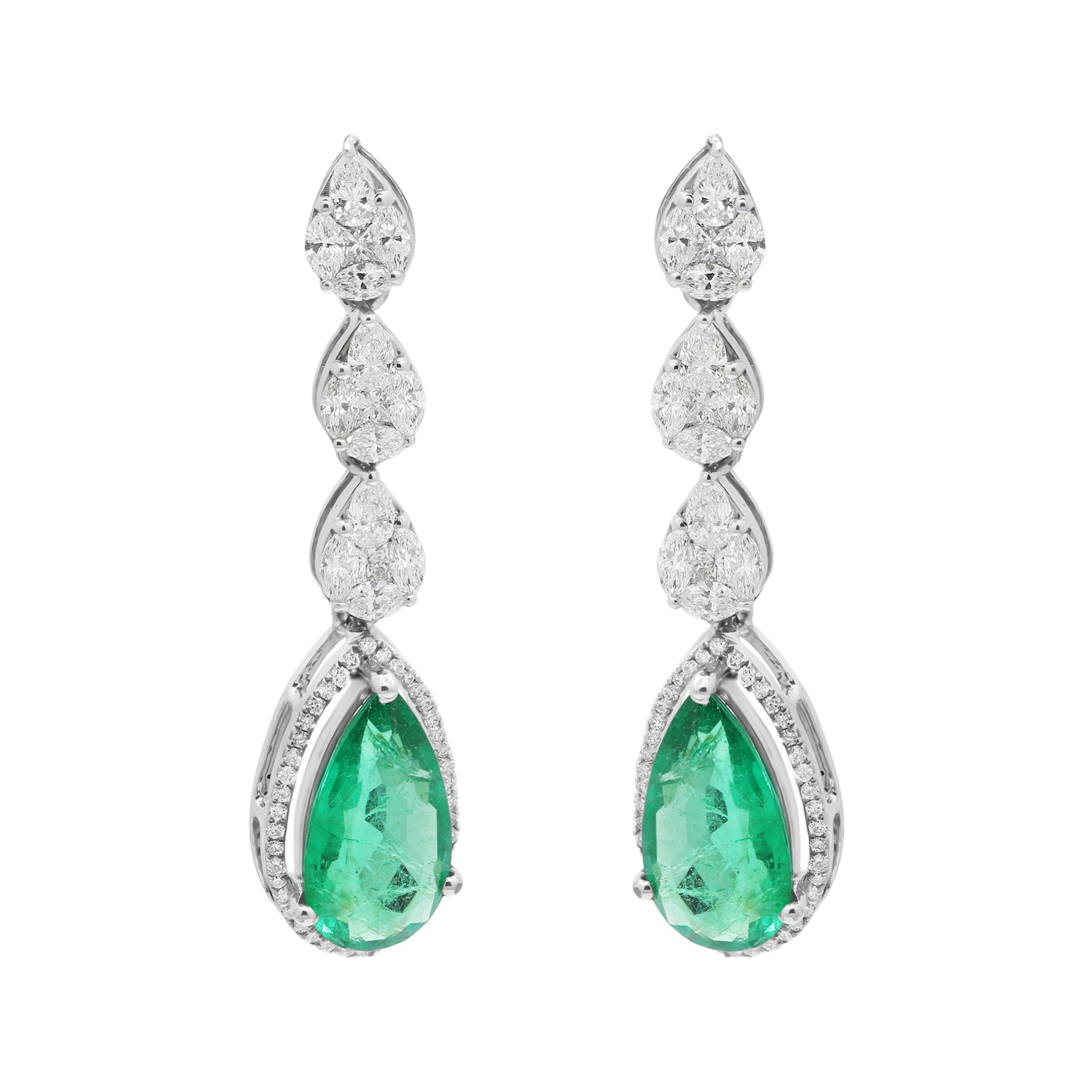 Item Type: Emerald With Diamond 18k White Gold Earring