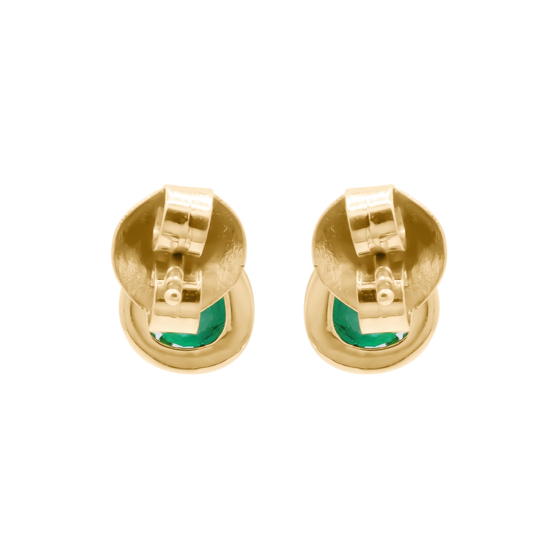Natural Emerald With Diamond 18k Yellow Gold Stud Earring