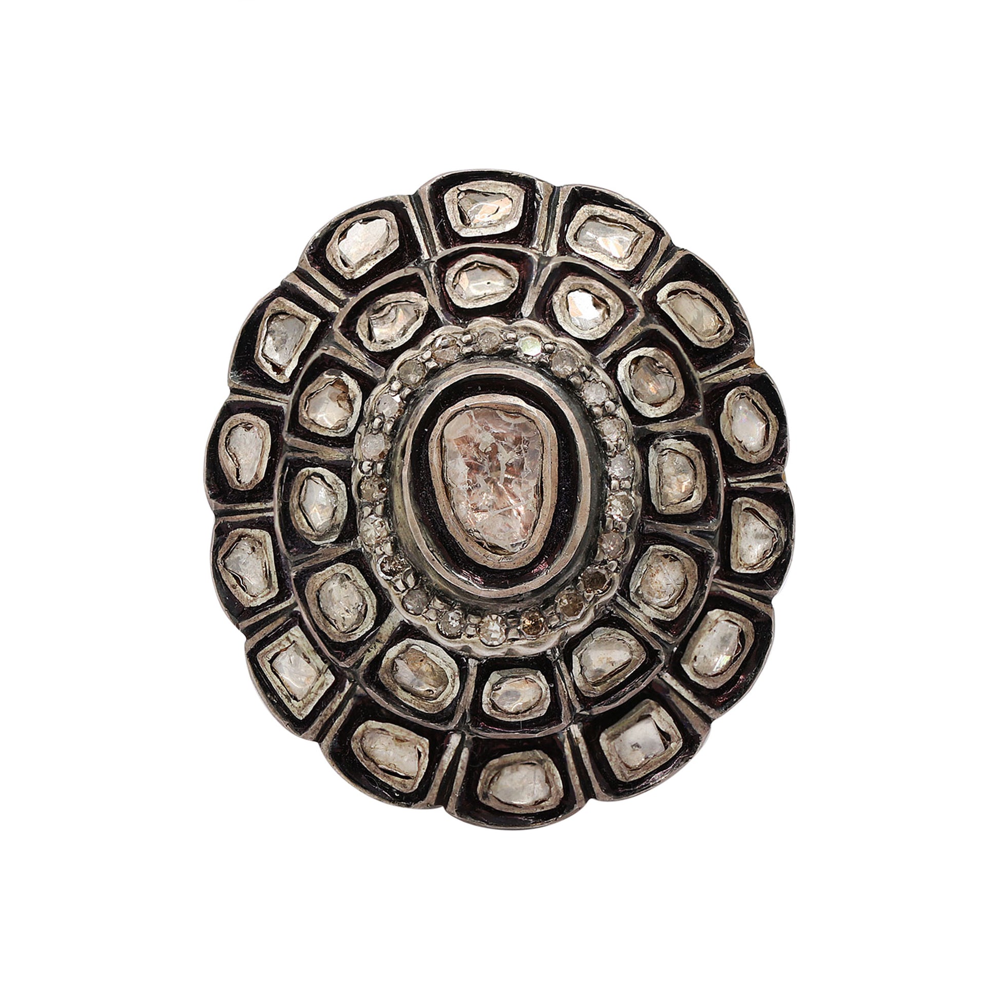 Handmade Polki Diamond Gold Plated 925 Sterling Silver Ring