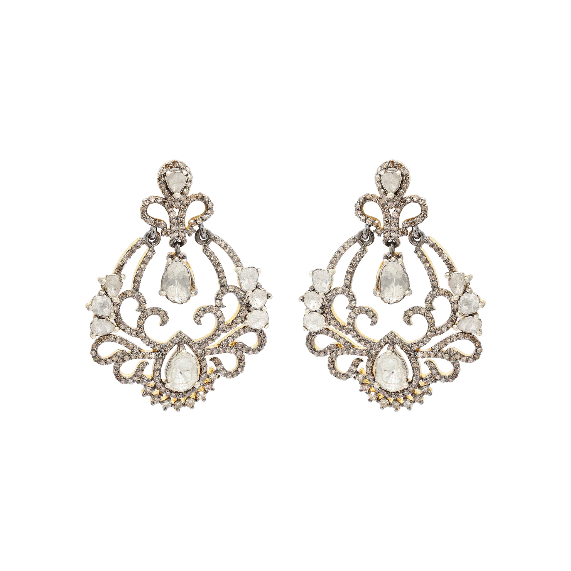 Beautiful Polki Diamond 925 Sterling Silver Gold Plated Drop Earrings
