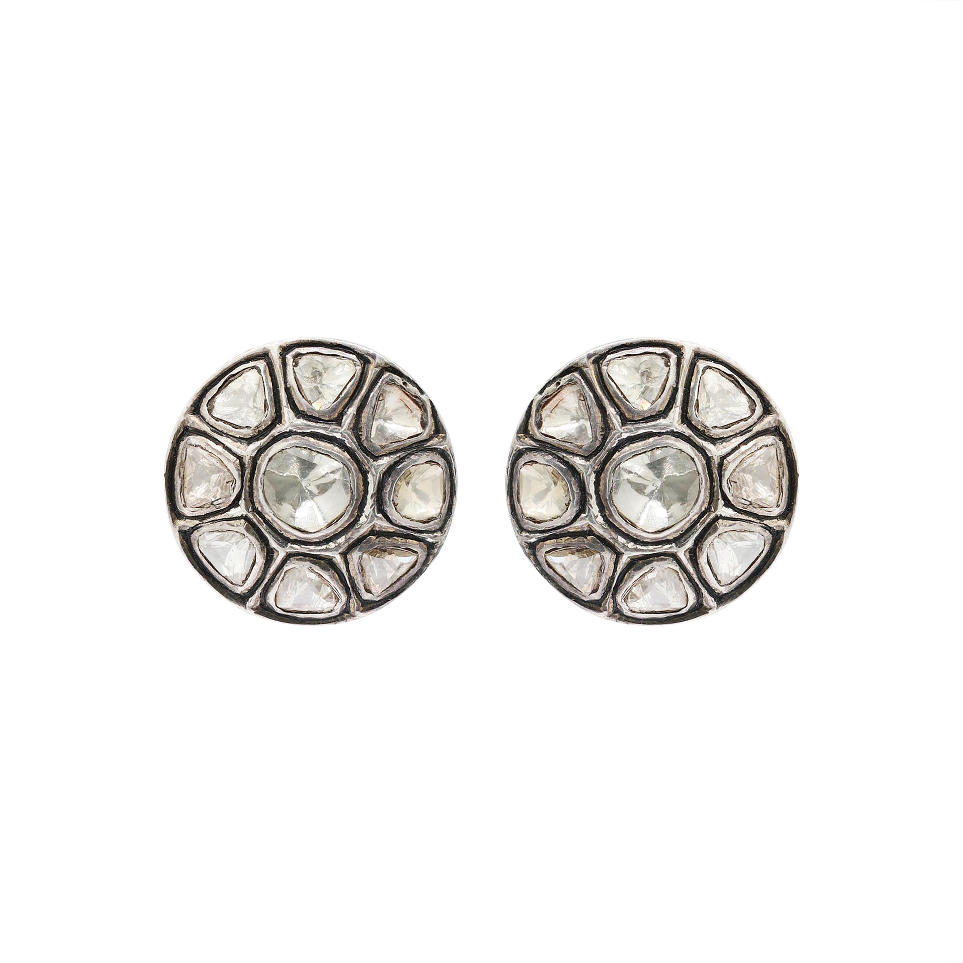 Natural Polki Diamond 925 Silver Stud Earrings