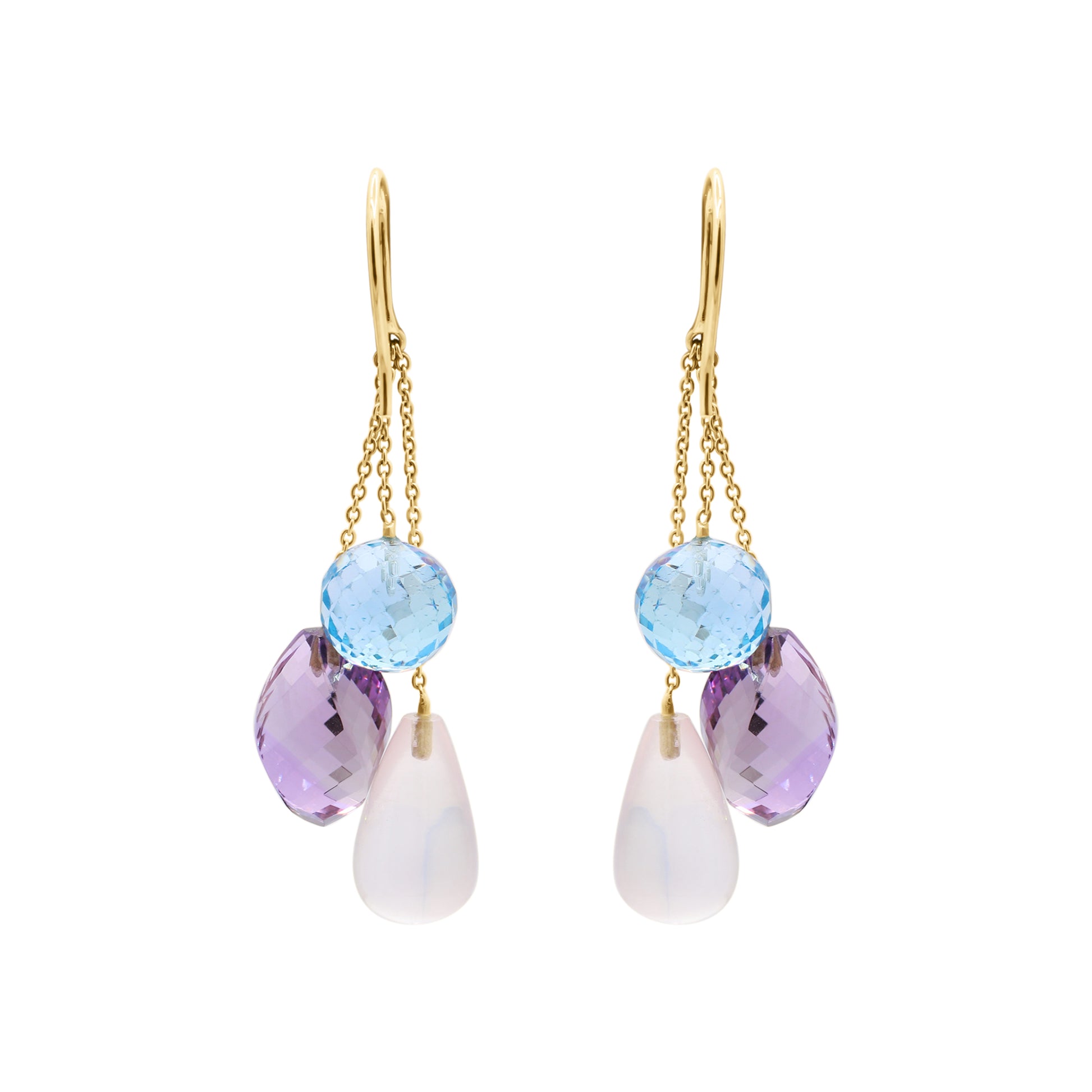 Item Type: 18k Gold Rose Quartz, Blue Topaz And Amethyst Gemstone Drop Earring