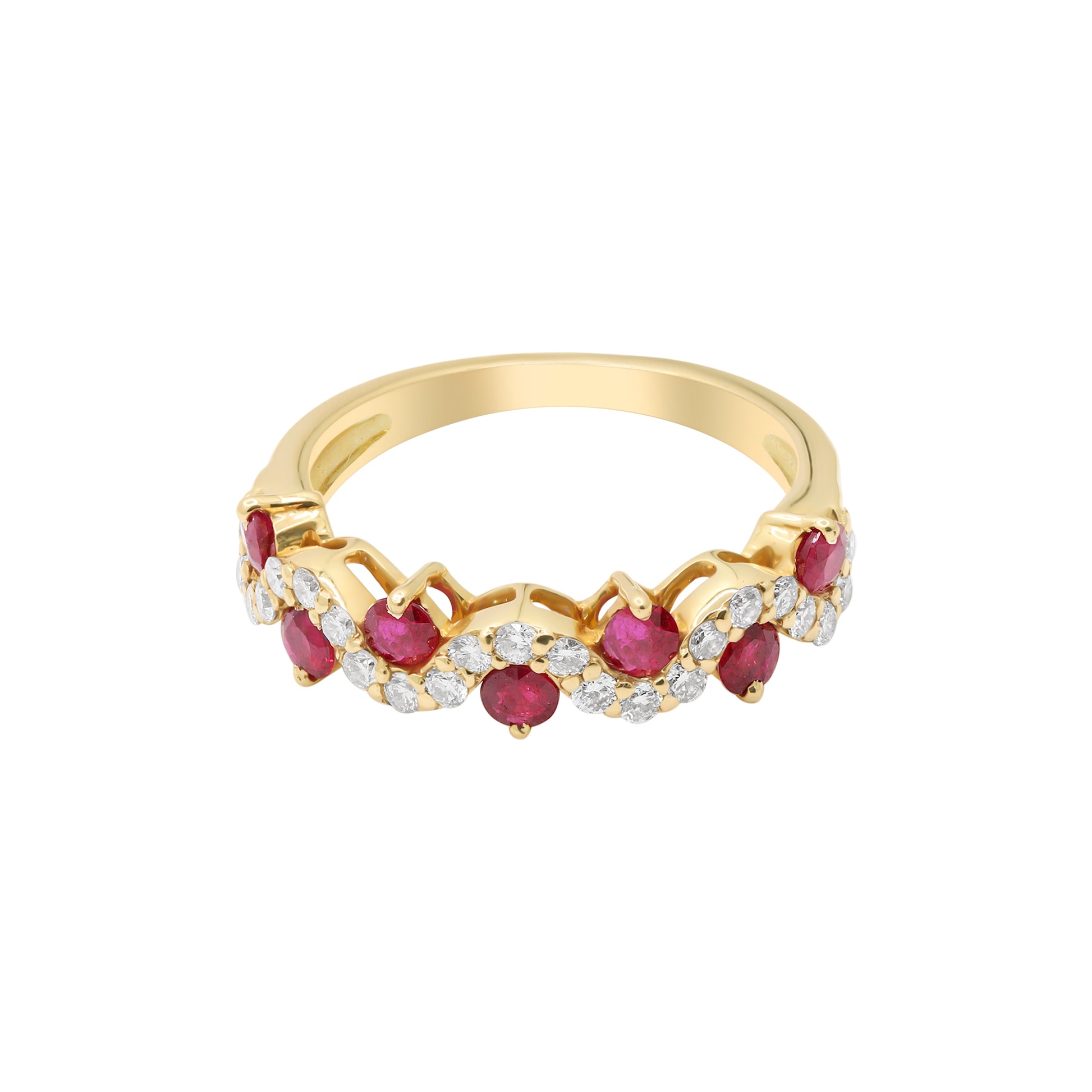 Natural Ruby With Diamond Gold Ring In 14k Yellow Gold