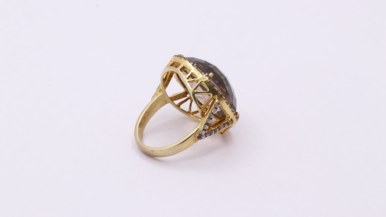 Natural Smoky Quartz & Diamond 925 Sterling Silver Ring