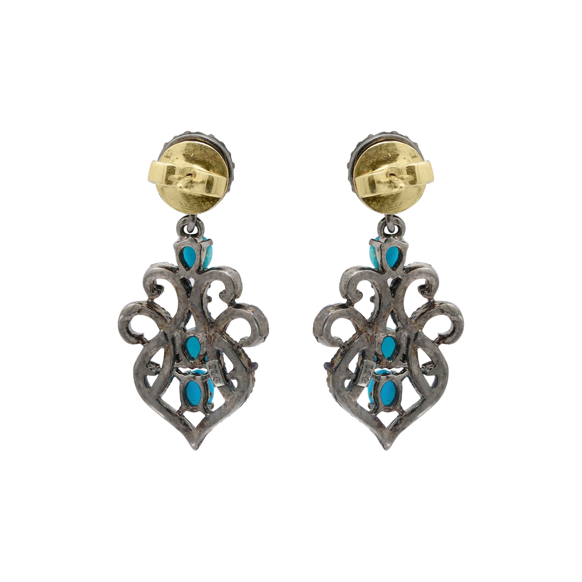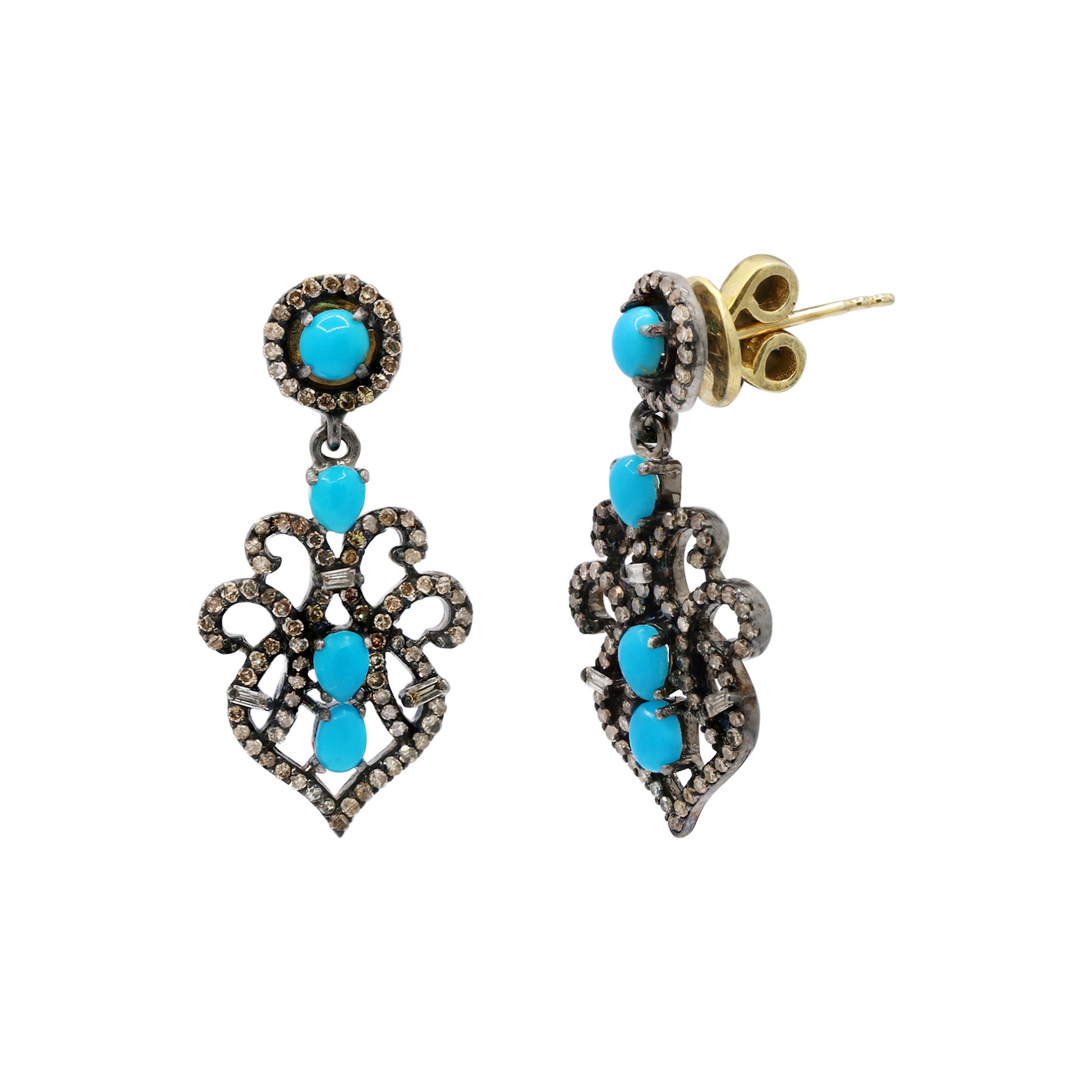 Natural Turquoise And Diamond 925 Sterling Silver Drop Earring